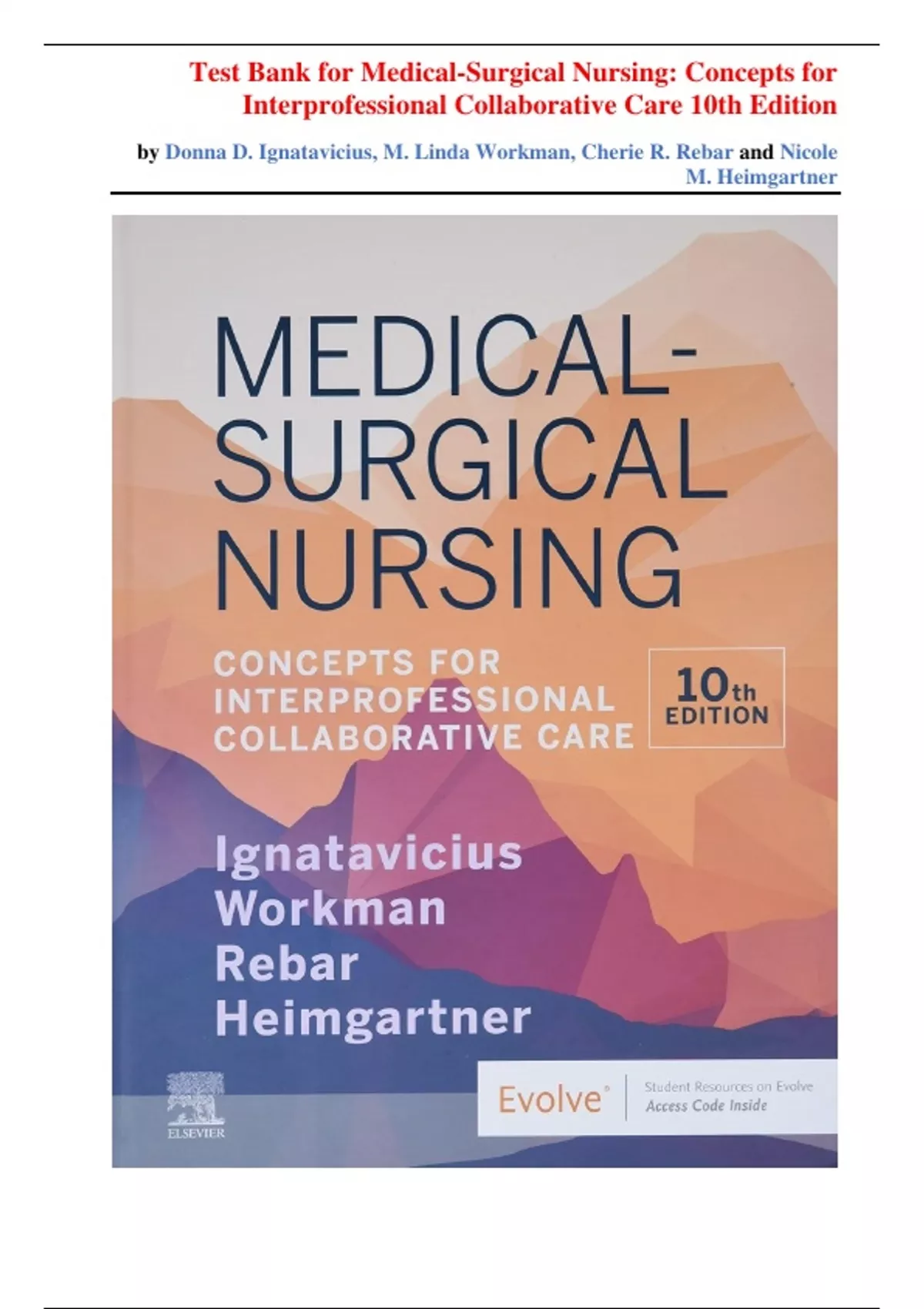 Download the Medical-Surgical Nursing Test Bank 11 & 12th Ed by Donna D. Ignatavicius, Cherie R. Rebar, and Nicole M. Heimgartner. These comprehensive Evolve-aligned resources feature accurate, frequently tested exam questions with 100% correct verified answers and detailed rationales to support clinical judgment, collaborative care, & exam success