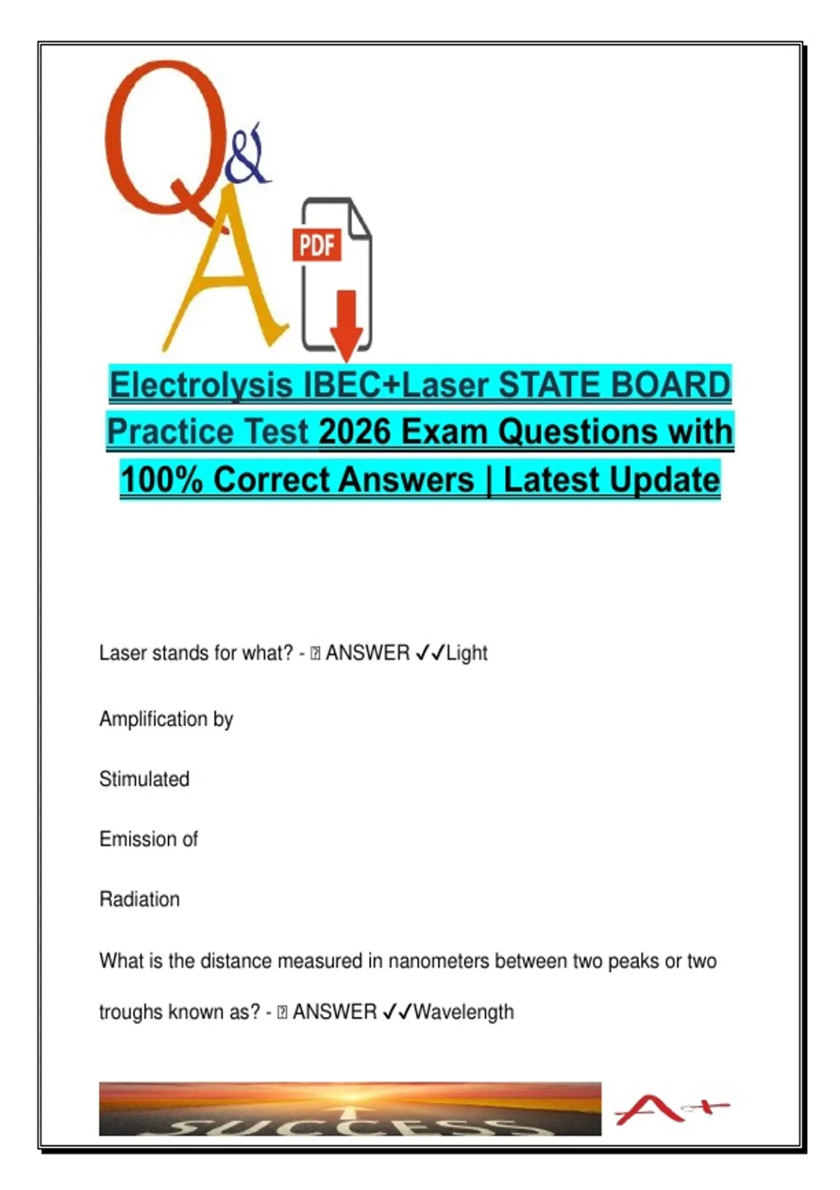 IBEC Electrology, Laser & IPL – 2026 Exam | Verified Questions with Answers | Skin Layers, Photothermolysis, Hair Growth
