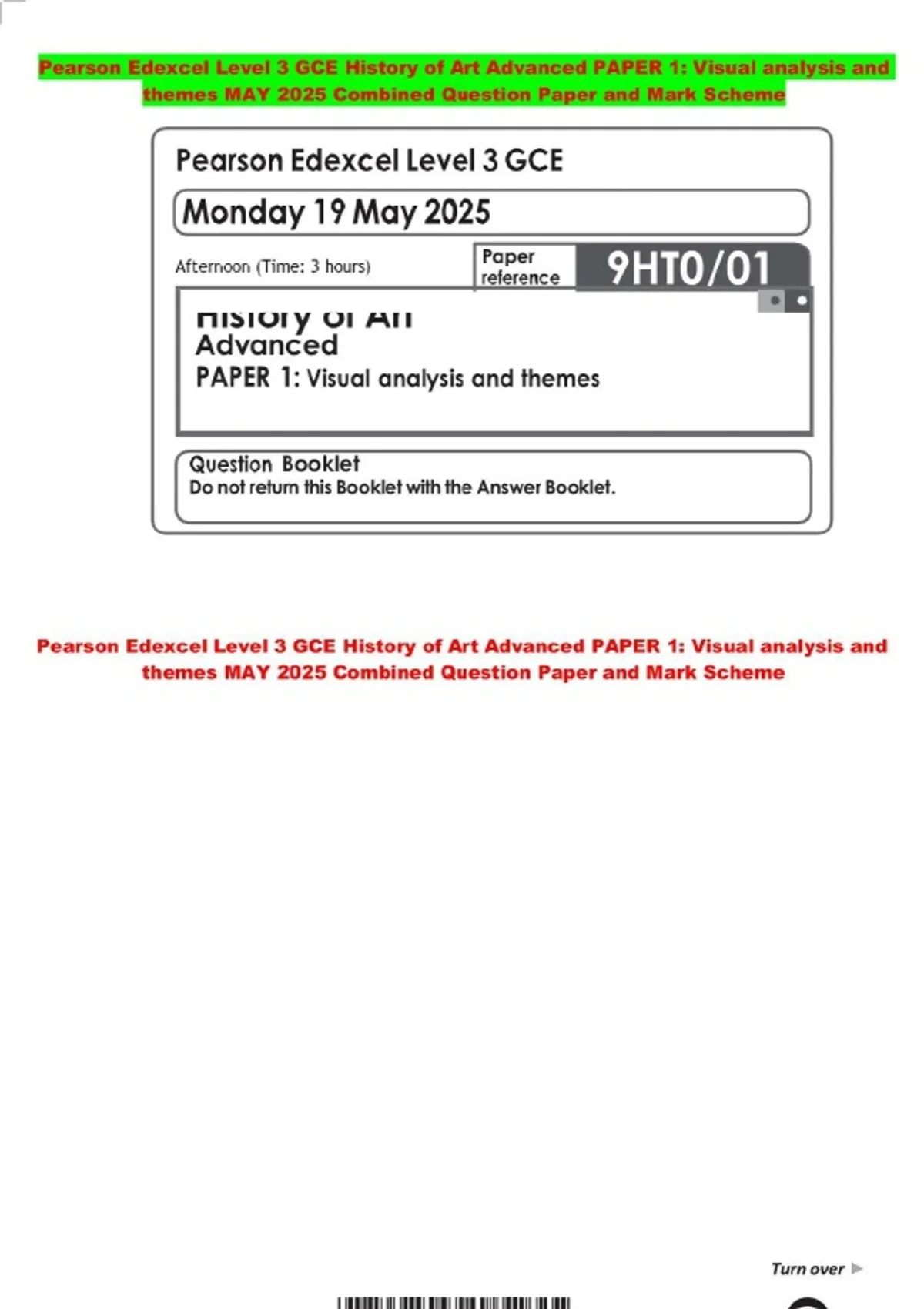 BUNDLE:::Pearson Edexcel Level 3 GCE History of Art Advanced PAPER 2025 Combined Question Paper and Mark Scheme