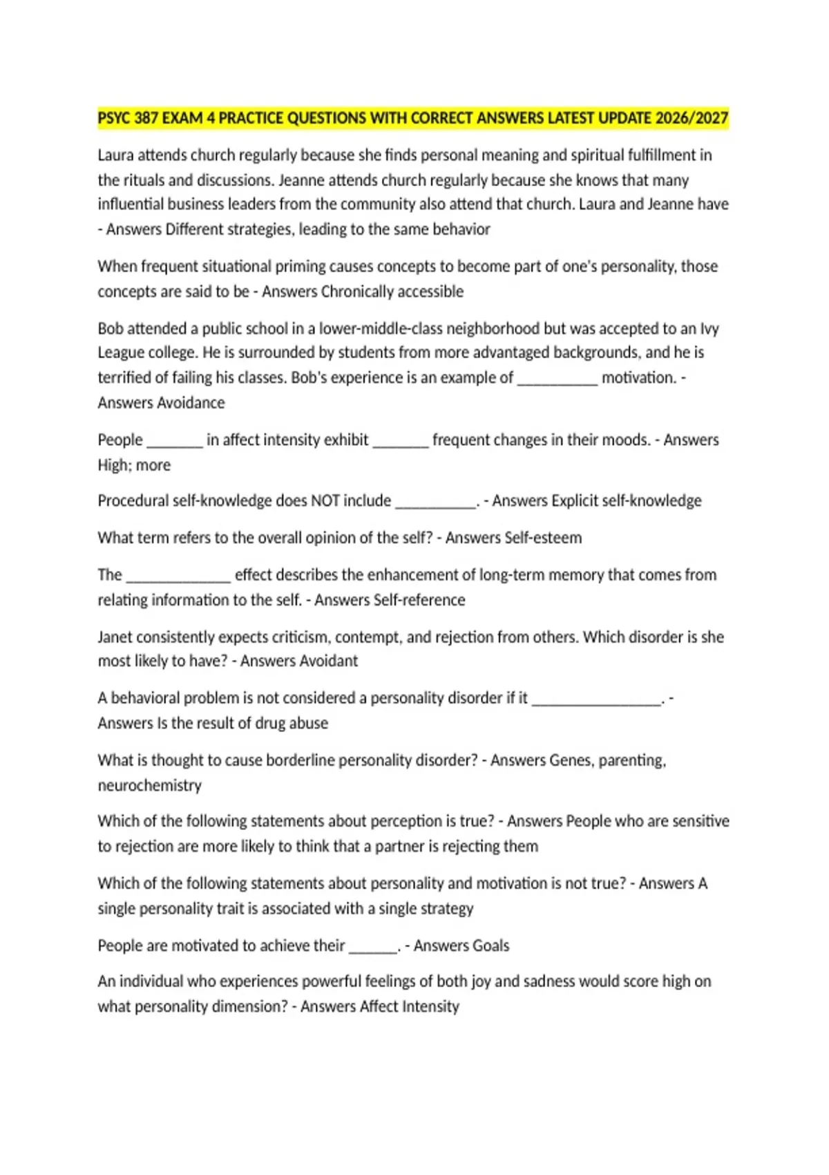 PSYC 387 BUNDLED QUESTIONS WITH CORRECT ANSWERS LATEST UPDATE 2026/2027
