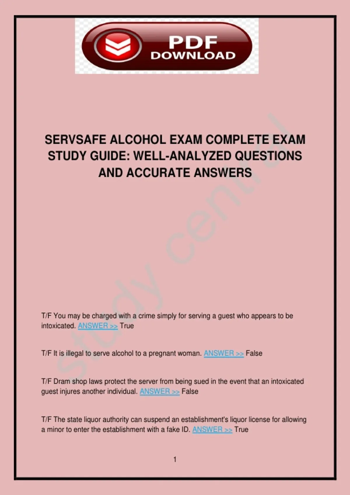 INSTANT PDF DOWNLOAD This bundled exam guide covers all major topics from the ServSafe Alcohol course, including responsible service practices, legal requirements, intoxication assessment, and intervention procedures. It features commonly set exam questions paired with fully verified correct solutions.