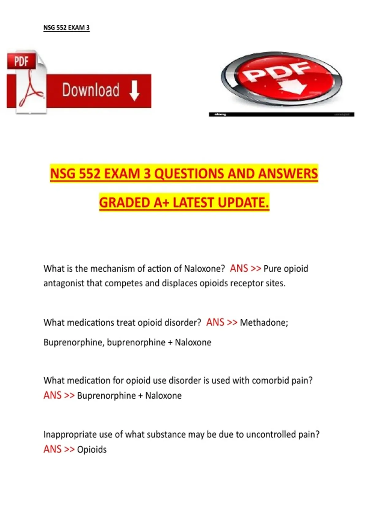 NSG 552 Exam 3 – New Questions and Answers, [Institution Name], Academic Year [Insert Year] – Verified A+ Latest Update NSG 552 Exam 1 – [Institution Name], Academic Year [Insert Year] – Questions and 100% Verified A+ Answers NSG 552 Exam 3 – [Institution Name], Academic Year [Insert Year] – Questions and Verified A+ Answers