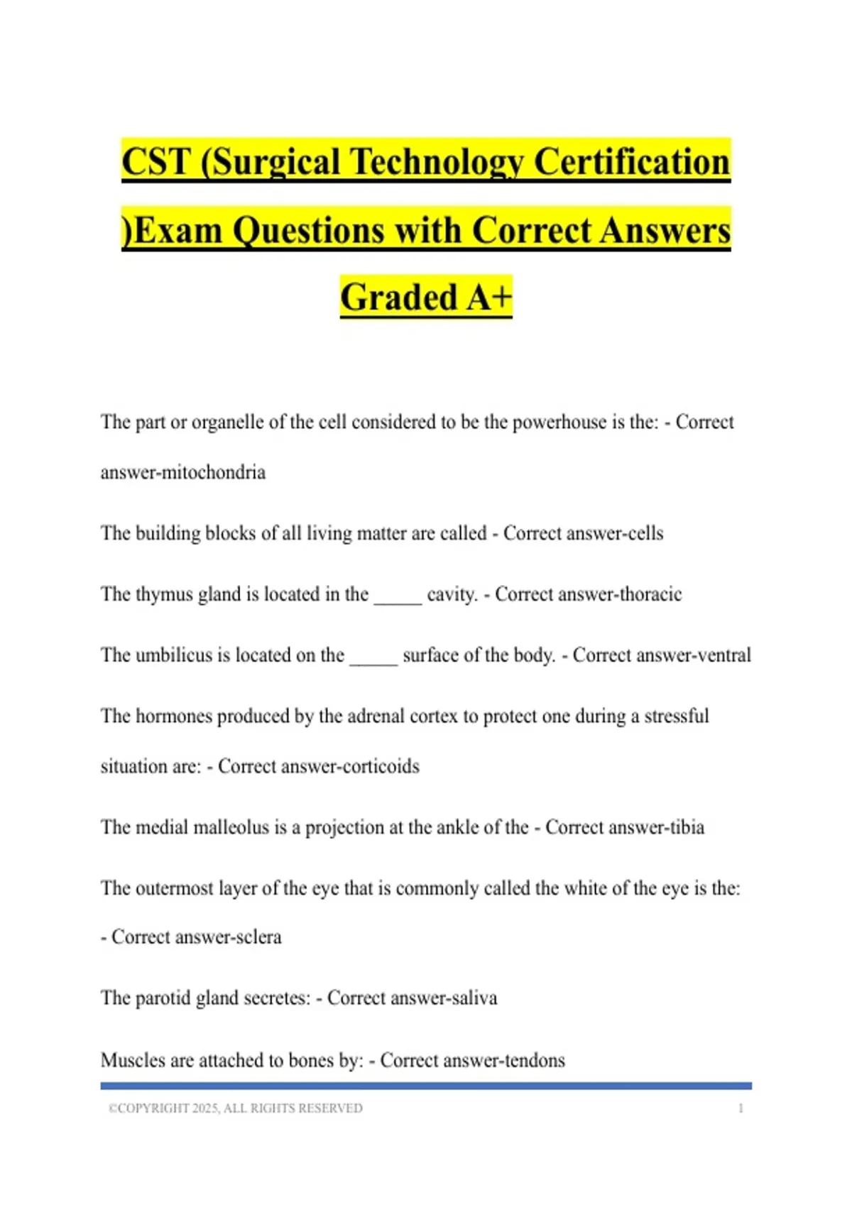 CST (Surgical Technology Certification )Exam Questions with Correct Answers Graded A+