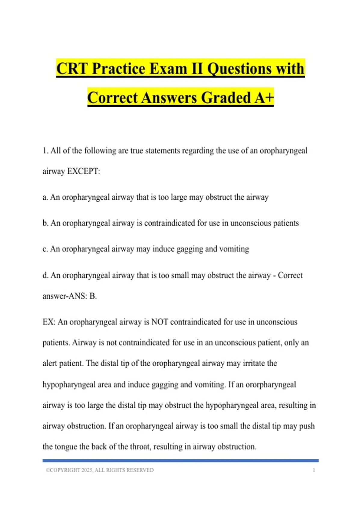 CRT Practice Exam II Questions with Correct Answers Graded A+