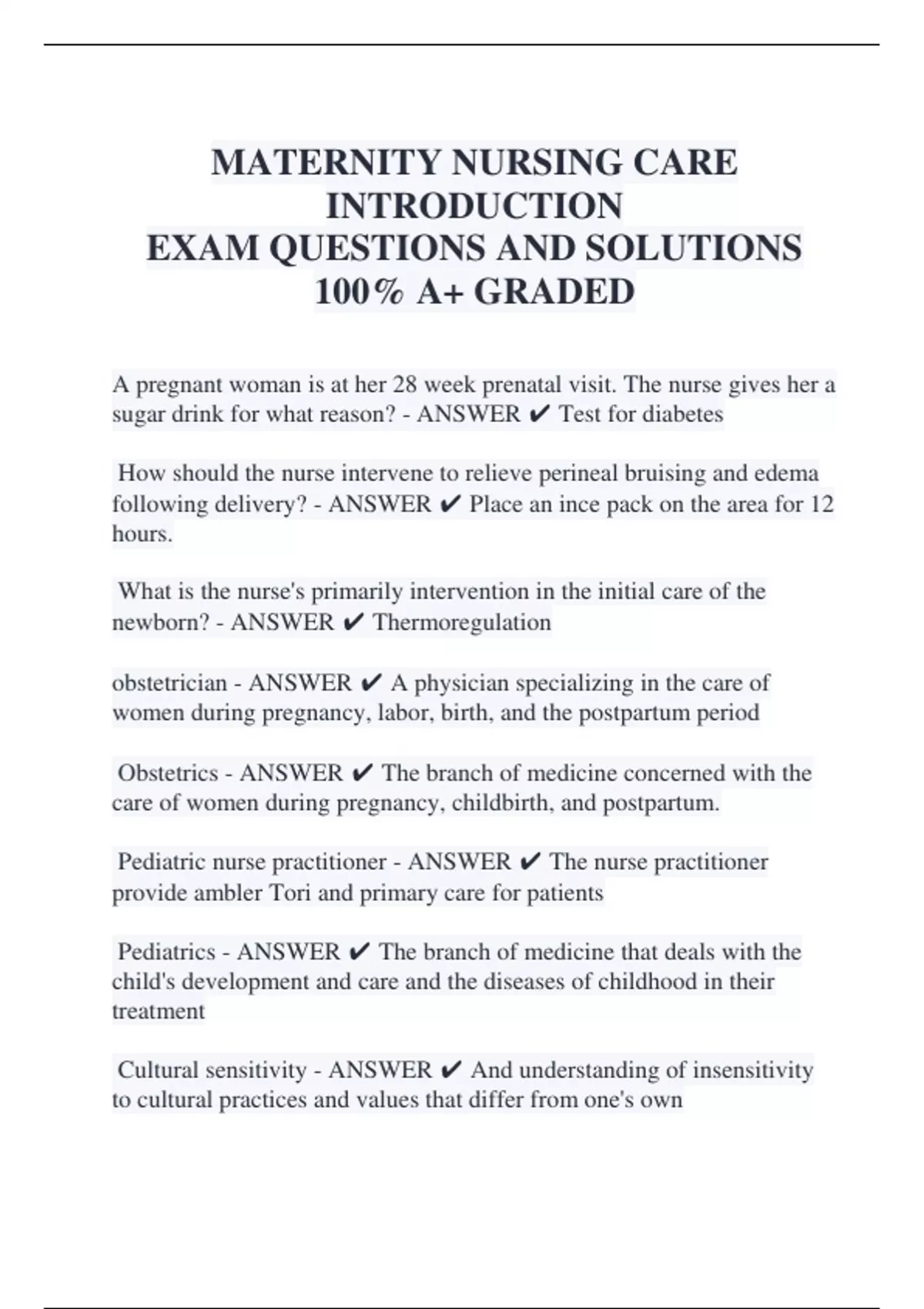 BUNDLE FOR Maternity Nursing EXAM QUESTIONS WITH CORRECT ANSWERS||100% GUARANTEED PASS||UPDATED 2026/2027 SYLLABUS||ALREADY GRADED A+||<<NEWEST VERSION>>