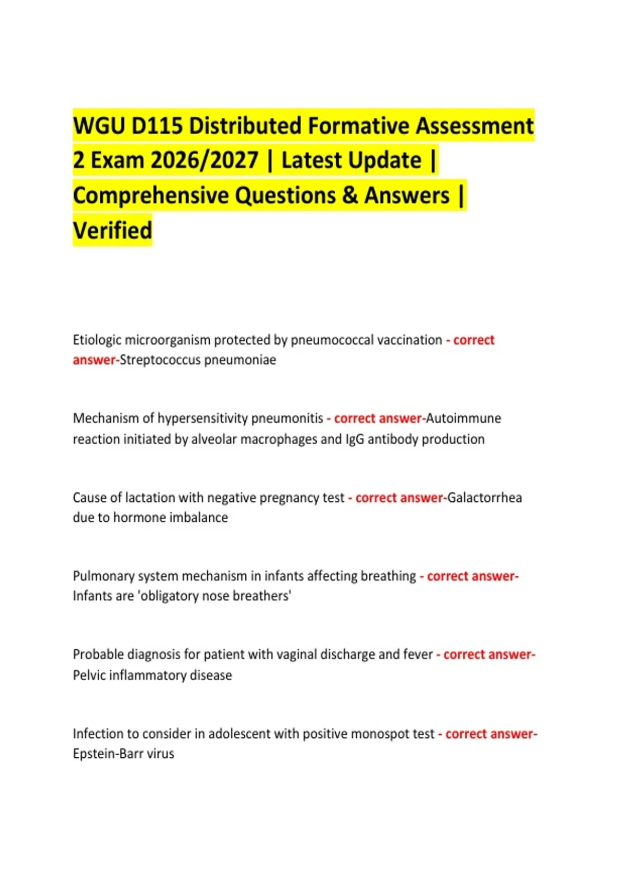 WGU D115 Distributed Formative Assessment 2 Exam Bundle 2026/2027 | Latest Update | Comprehensive & Verified Q&A