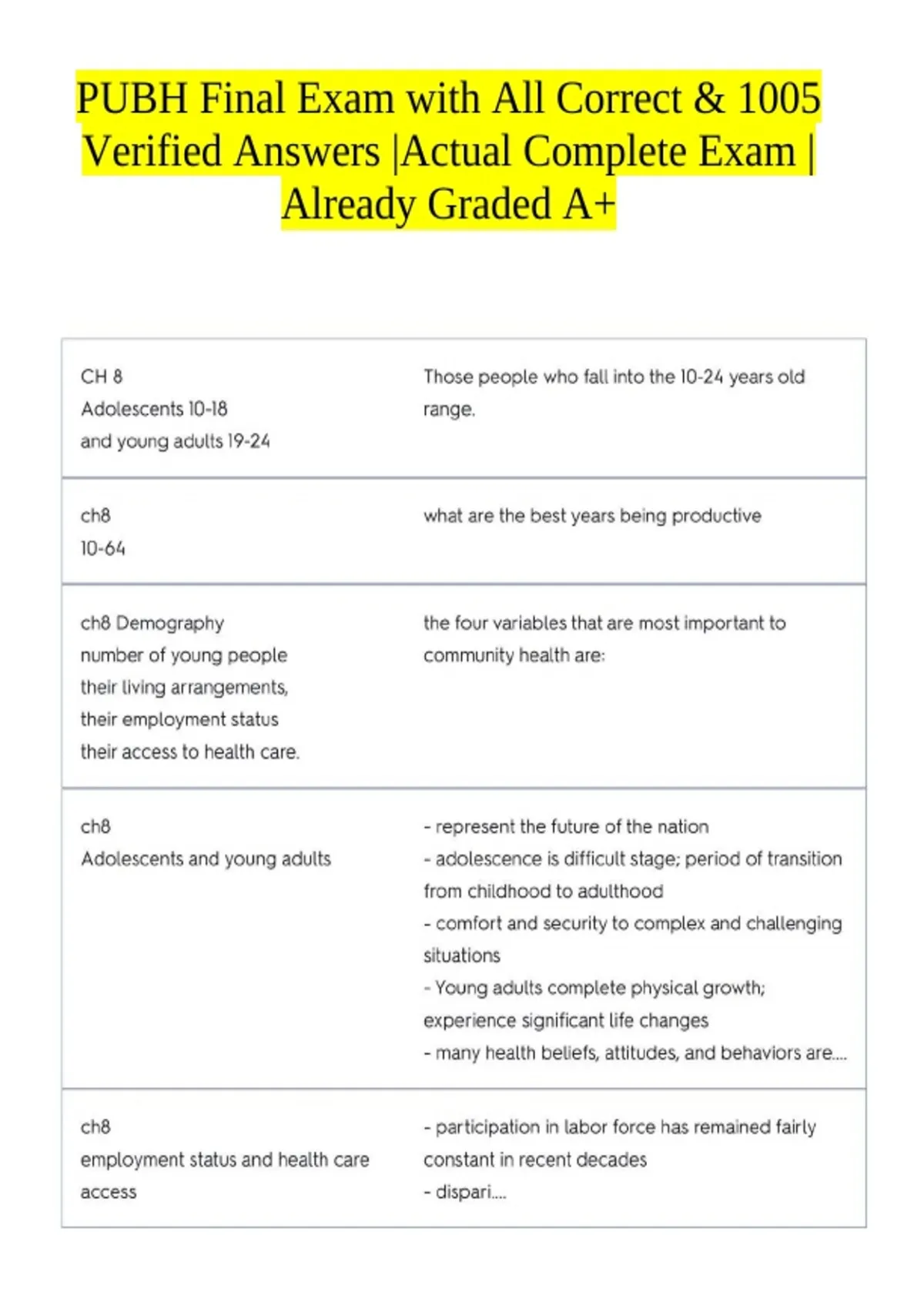 PUBLIC HEALTH (PUBH) EXAM PACKAGE DEAL