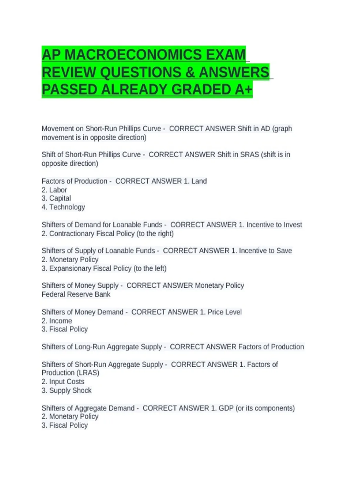 package deal for MACROECONOMICS EXAM (LATEST UPDATE)