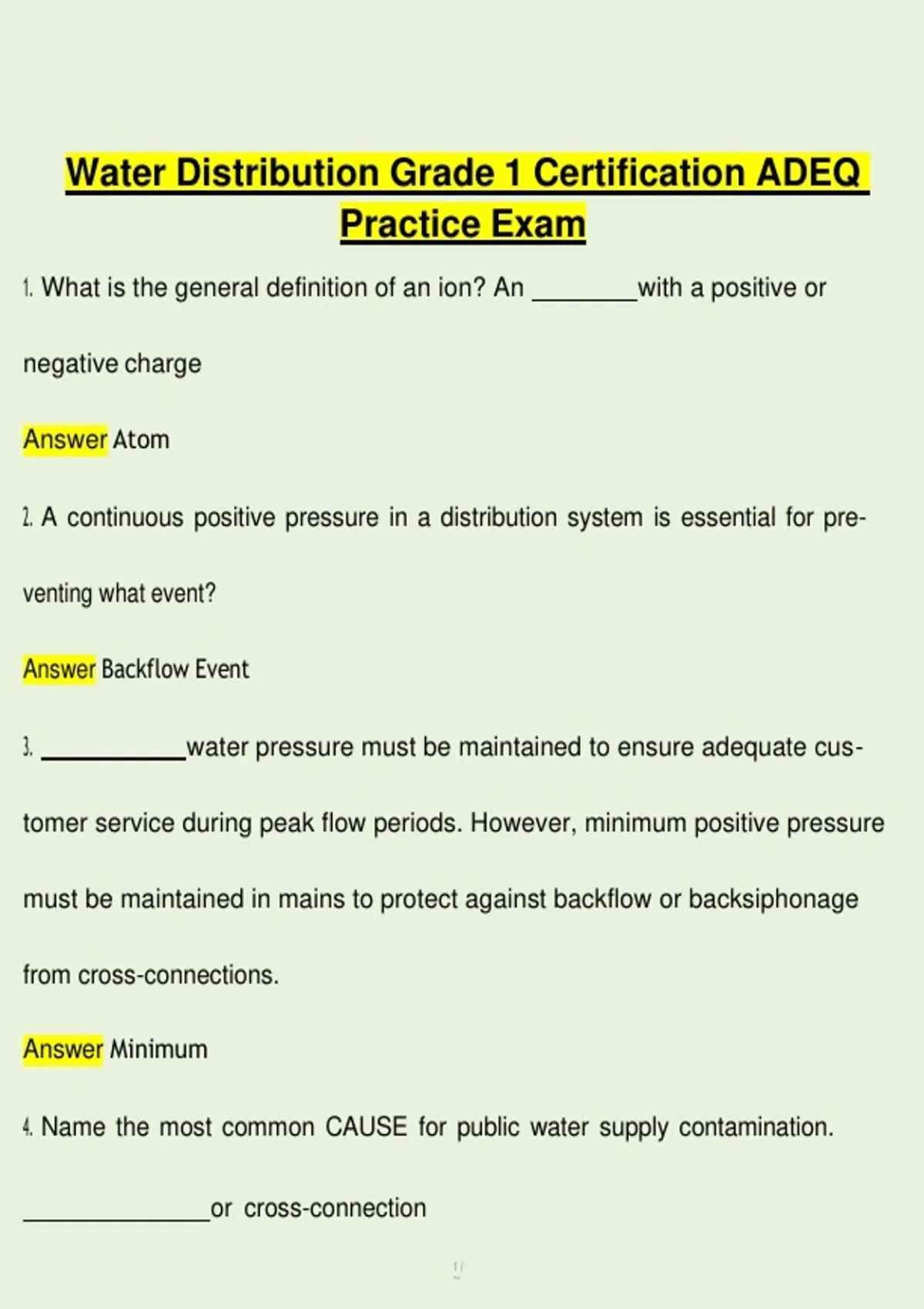 This Water Distribution exam bundle provides comprehensive coverage of essential topics in water distribution systems. It includes detailed explanations of system design, hydraulics, pumps, valves, pipelines, storage facilities, water quality standards, and maintenance practices. The bundle also features exam-style practice questions with fully wor