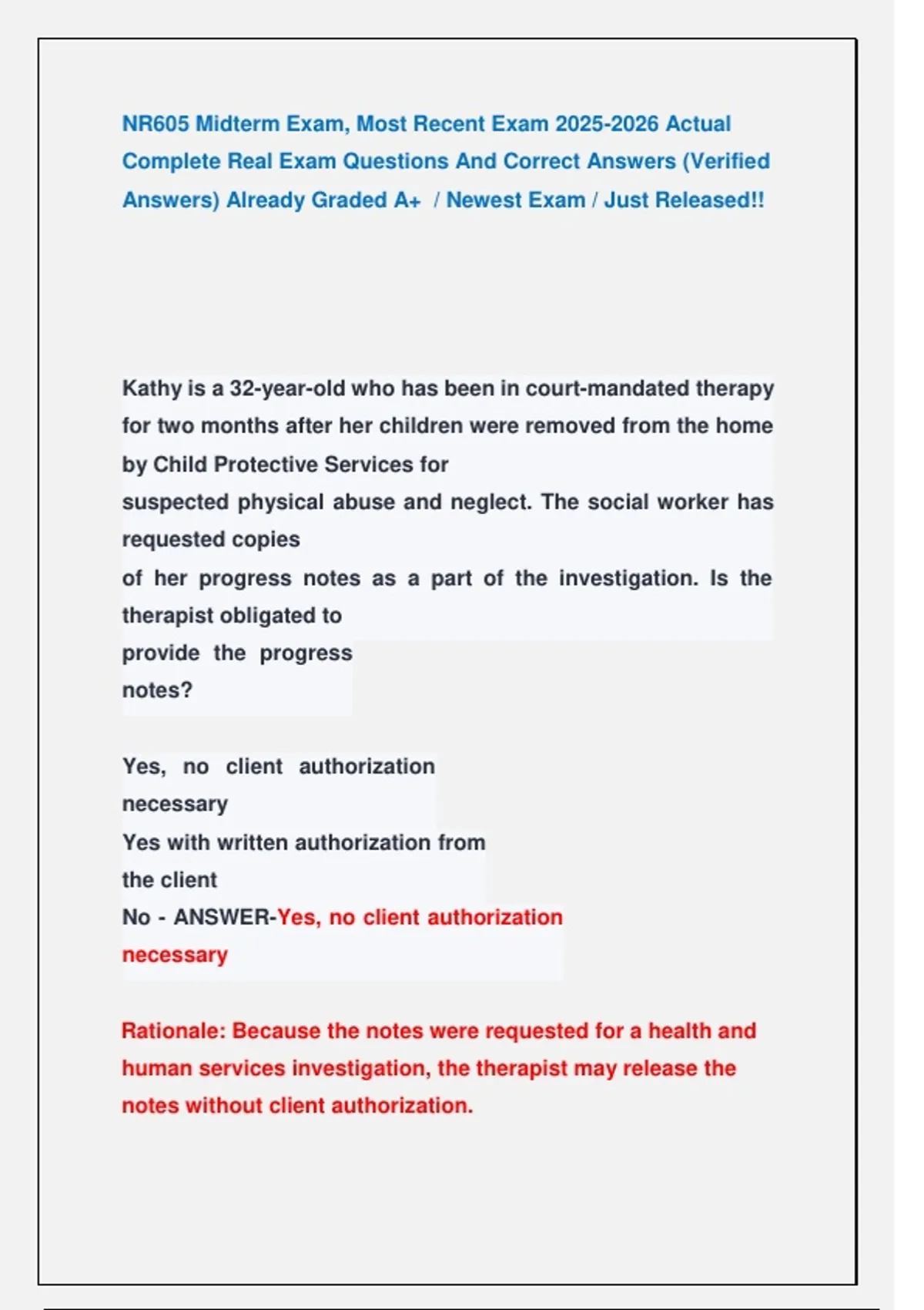 NR605 Midterm Exam, Most Recent Exam Actual Complete Real Exam Questions And Correct Answers NR605 Final & Midterm Exam | Diagnosis & Management Exam Complete Test , Practice Questions, Verified Answer Key, and Study Guide (2026 Edition) NR605 Final Exam Complete Test , Practice Questions, Verified Answer Key, and Study Guide (2026