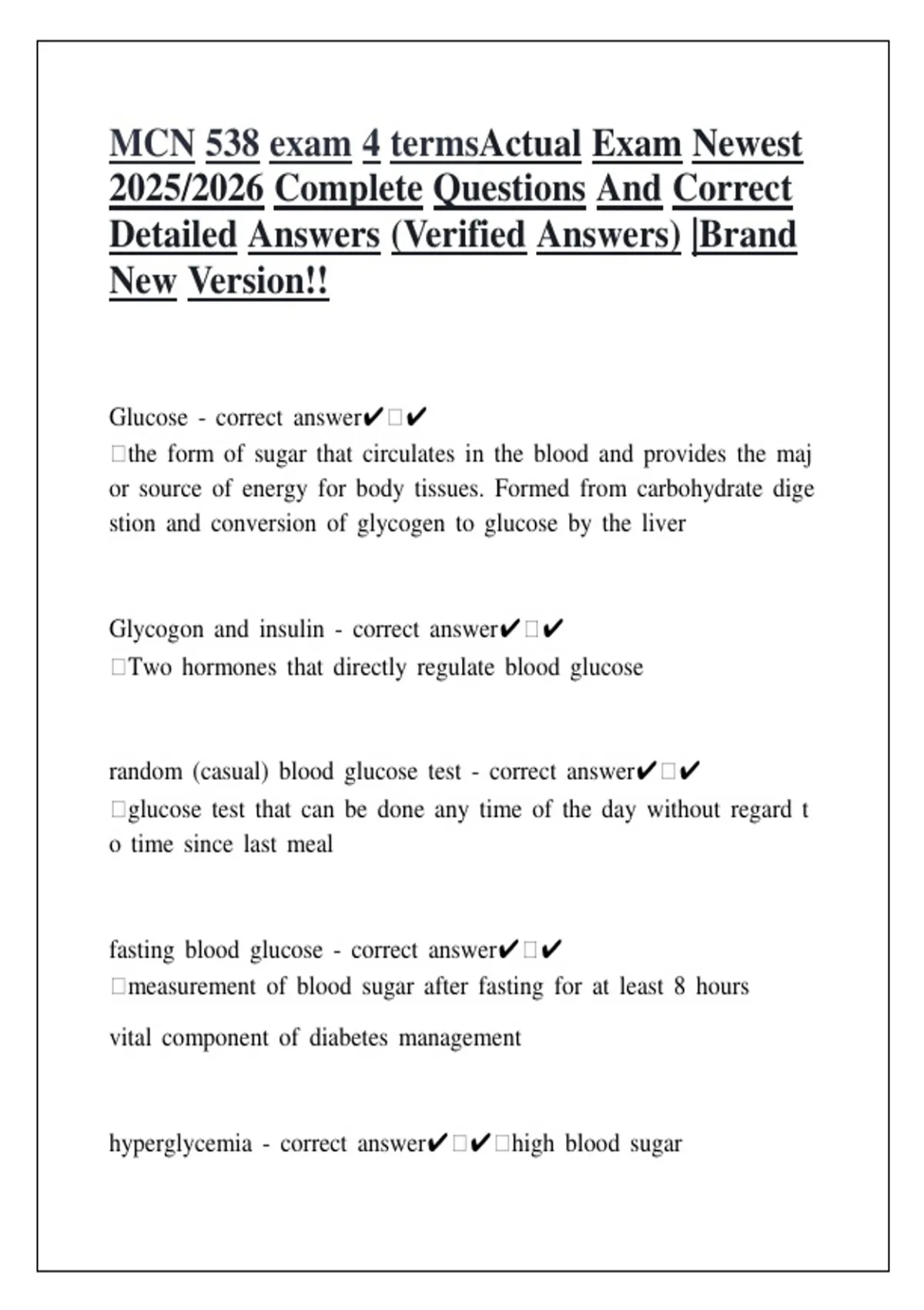MCN 538 EXAM ALL WITH COMPLETE SOLUTION COMPLETE BUNDLE PACKAGE DEAL!!!!