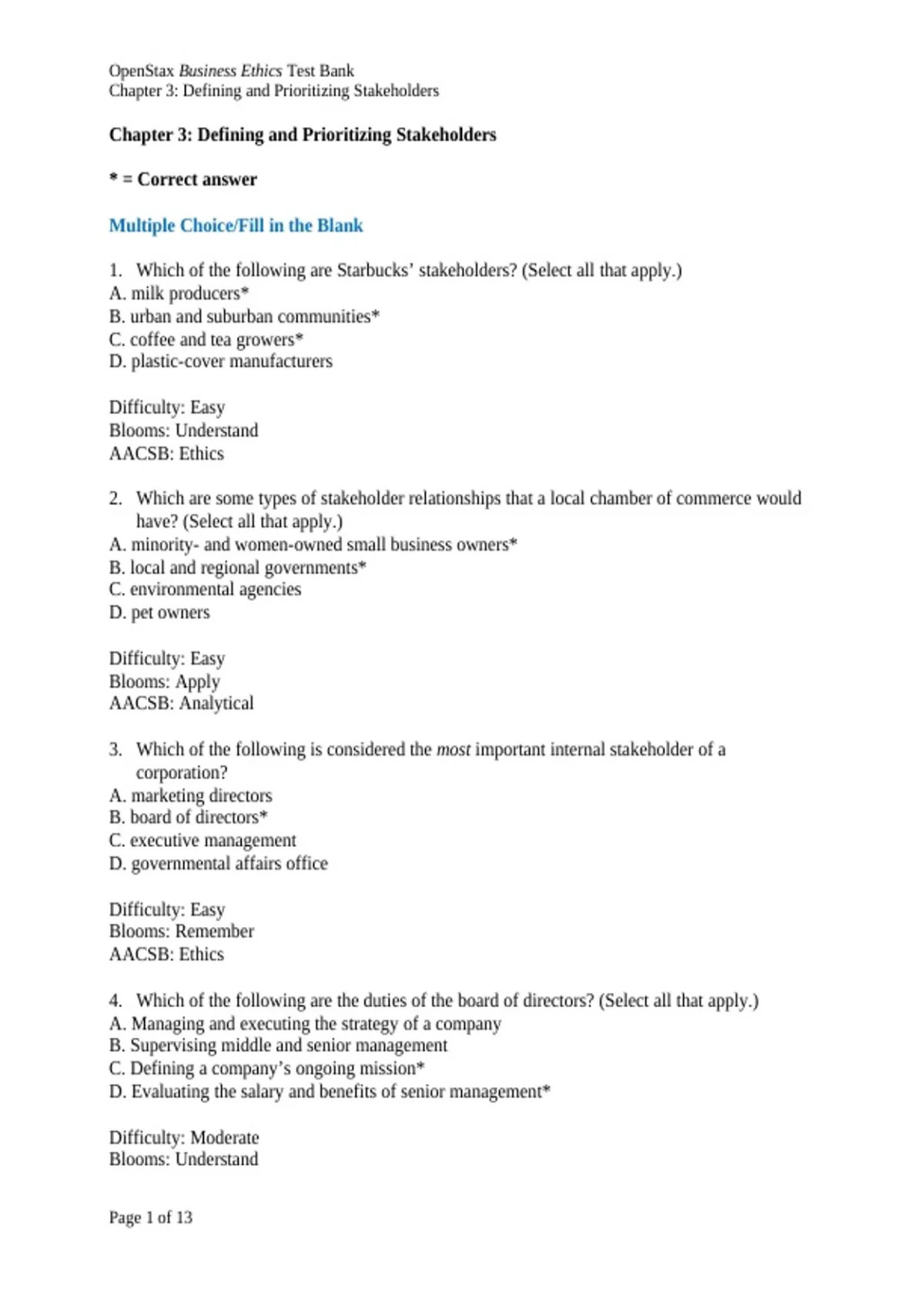 Three Special Stakeholders Chapter 4 Ethics Test Bank 2025/ 2026 Comprehensive Exam Study Resource