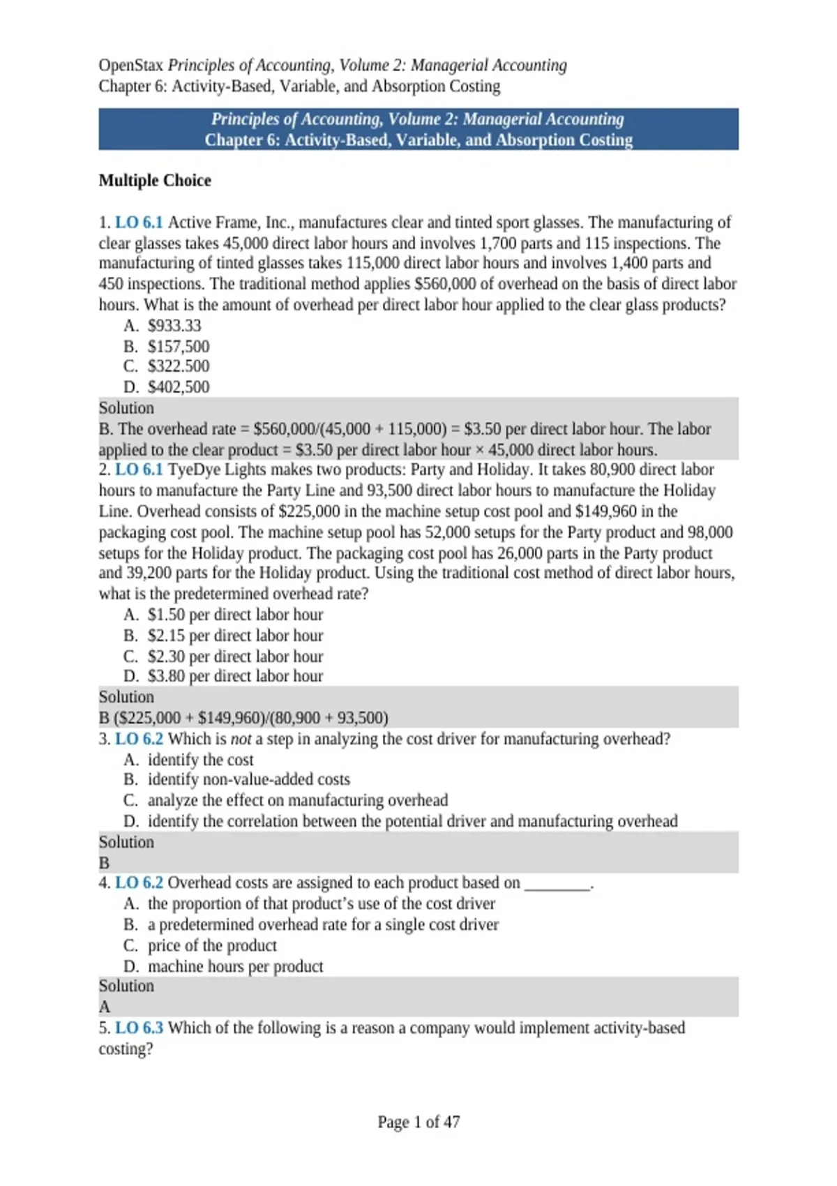 OSX Managerial Accounting ISM Chapter 6 Study Guide 2025/ 2026 with Solution