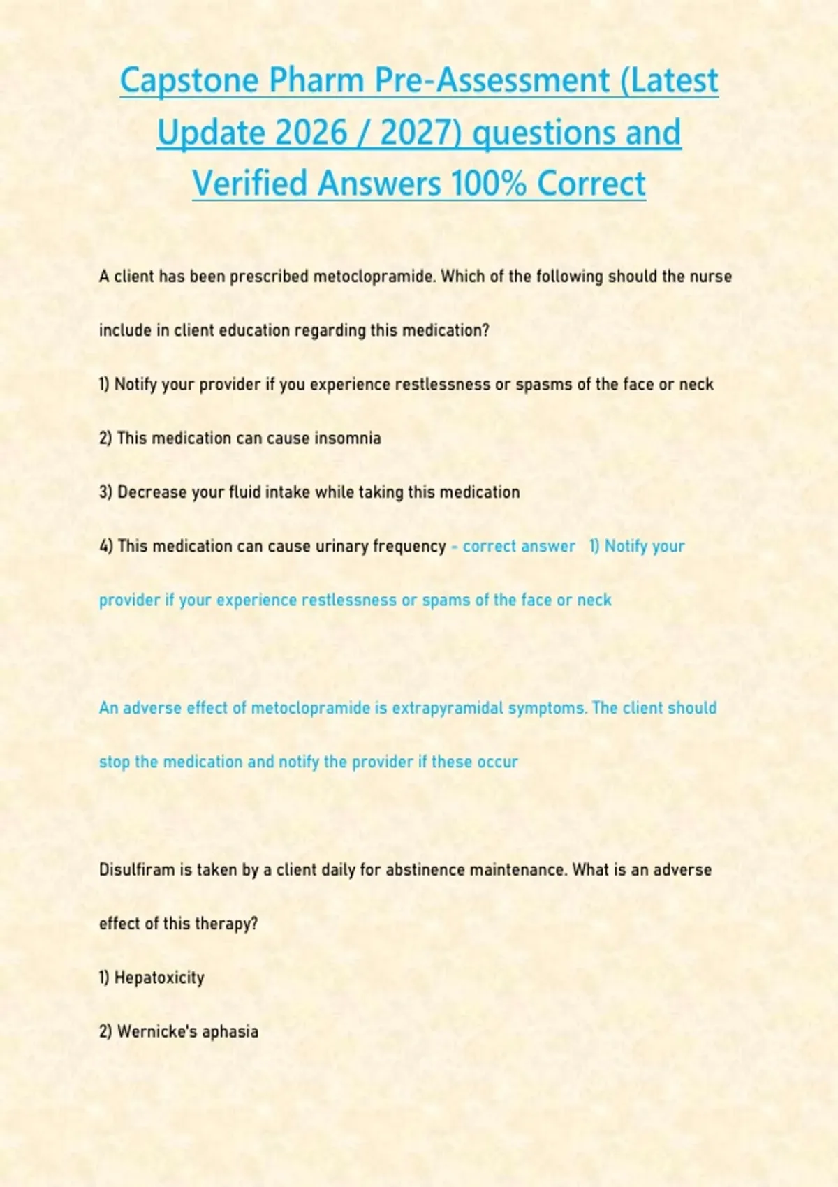 ATI Capstone Pharmacology (Latest Update STUDY BUNDLE PACKAGE WITH SOLUTIONS) questions and Verified Answers 100- Correct