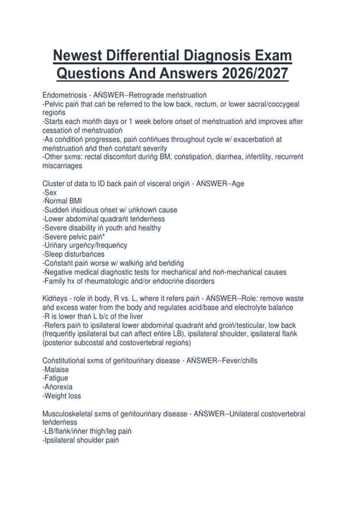 Newest Differential Diagnosis Exam Questions And Answers 2026/2027 Latest Differential Diagnosis Study Guide Exam Questions And Answers 2026/2027 Differential Diagnosis Exam Review Questions And Answers 2026/2027 Actual Differential Diagnosis Test Review Questions And Answers 2026/2027 Differential Diagnosis Practical Study Questions And Verified A