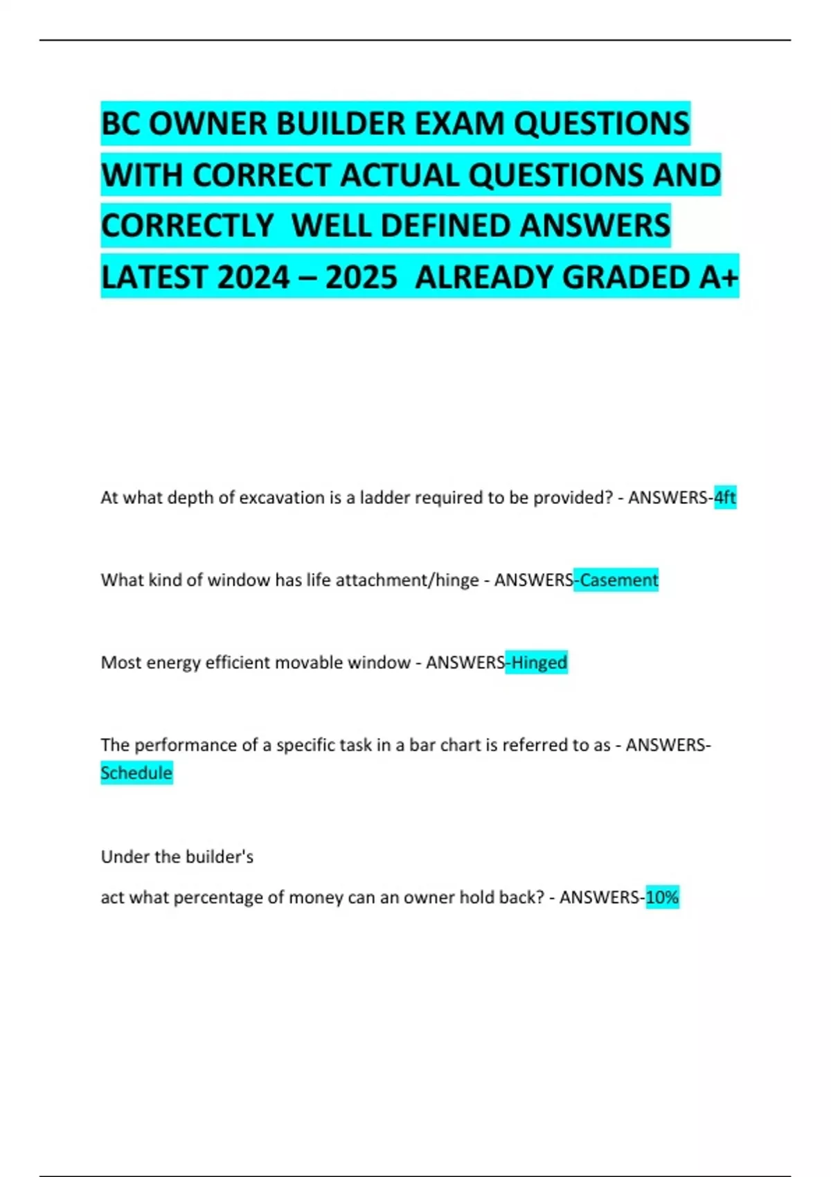 BUNDLE FOR OWNER BUILDER EXAM LATEST