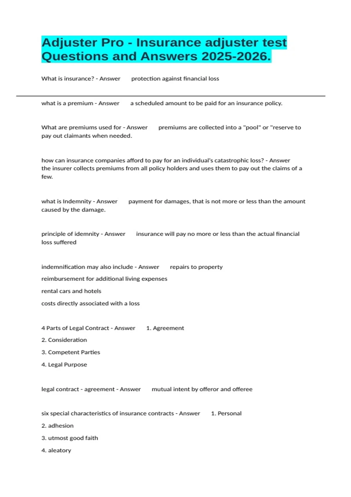 Insurance Adjuster Exam Package Deal Bundle () Latest Update.