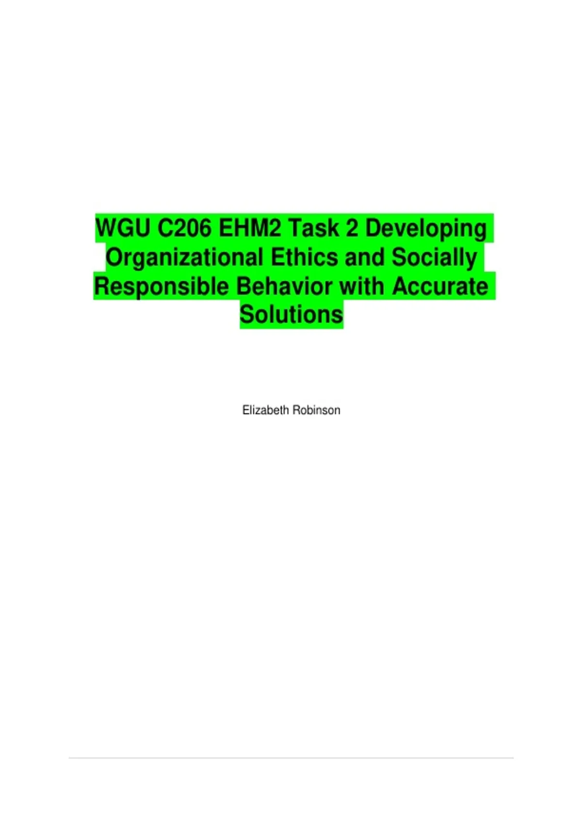 OTHER WGU C206 EHM2 Task 1 Developing Organizational Ethics and Socially Responsible Behavior with Accurate Solutions 2026 2 OTHER WGU C206 EHM2 Task 2 Developing Organizational Ethics and Socially Responsible Behavior with Accurate Solutions