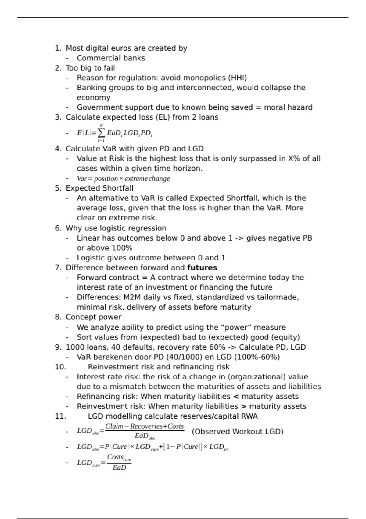 Bundel examenvragen samenvatting Banking (Master) (18/20)