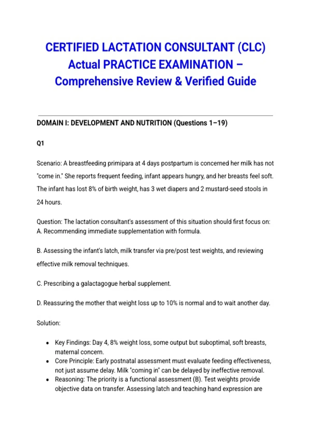 CERTIFIED LACTATION CONSULTANT (CLC) Actual EXAM COMPILATION BUNDLE – Comprehensive Review & Verified Solutions