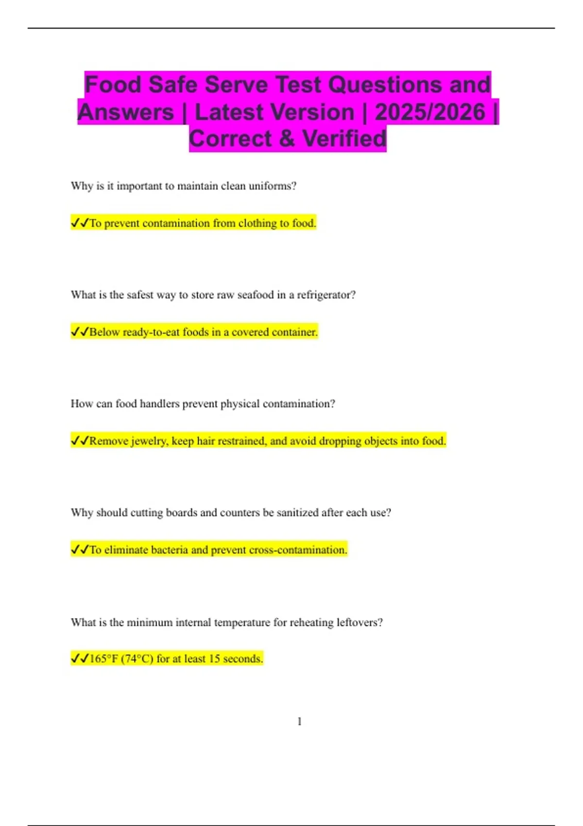 Food Handler Bundled Exams Questions and Answers Multiple Versions Latest Updates (2025/2026) (Complete, Accurate, and Verified)