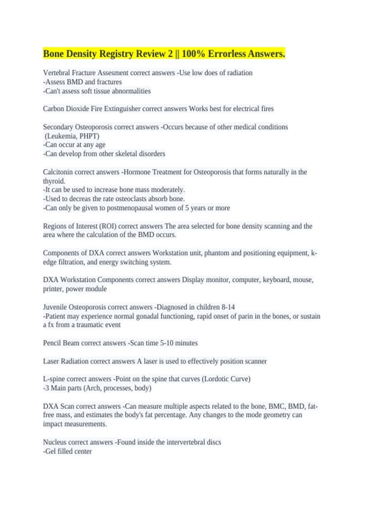 ISCD Bone Densitometry Course || All Solved Correctly. Bone Density Registry Review 2 || 100% Errorless Answers. Bone Density Registry review || 100% Correct Answers. ARRT Bone Density Exam Study Set || A+ Graded Already. Bone Densitometry || with Detailed Solutions. Bone Densitometry Basics || A+ Certified Solutions. Bone Density || 100% Accurate
