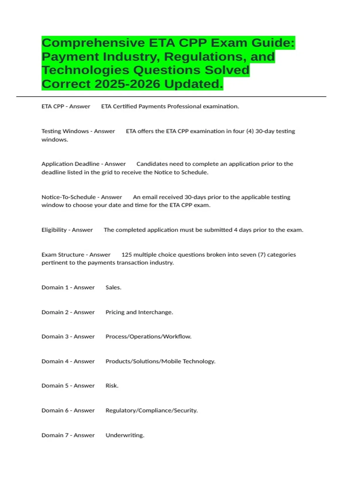 1 Exam (elaborations) Study Questions-CPP Exam with Guaranteed Passed Answers Updated. 2 Exam (elaborations) Module 2-CPP Exam Questions and All Correct Answers 2026 Updated. 3 Exam (elaborations) Final CPP Exam Questions with Guaranteed Pass Solutions Updated.