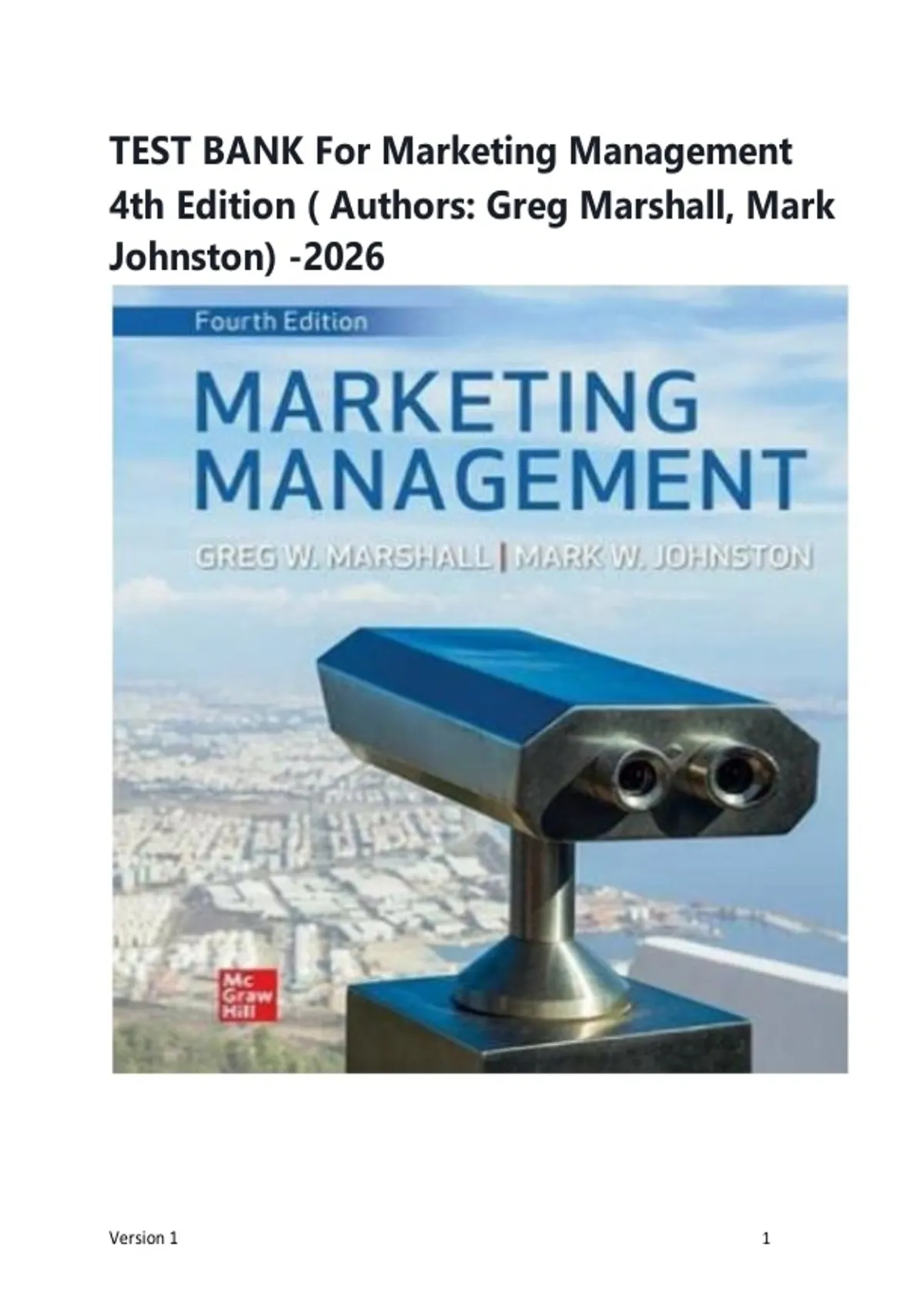 Solution Manual and Test Bank for Marketing Management 4th Edition ( Authors: Greg Marshall, Mark Johnston) -2026| All Chapters 1-14| Latest Edition