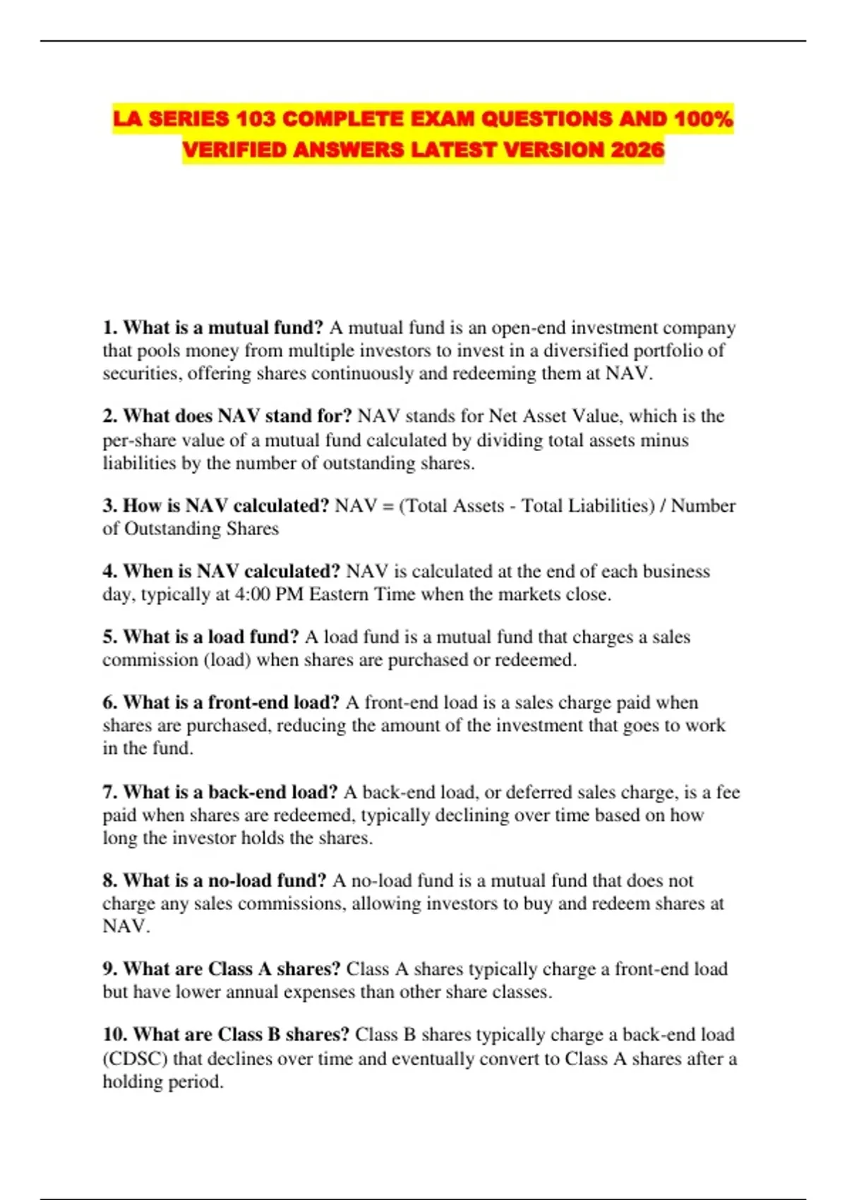 LA SERIES 103 NEW EXAM QUESTIONS AND CORRECT ANSWERS FOR TOP PERFORMANCE