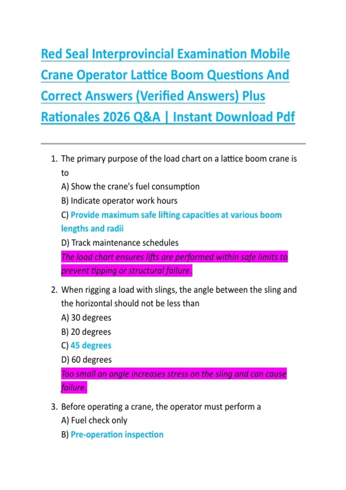 Bundle for Red Seal Interprovincial Examination Mobile Crane Operator Lattice Boom and Swing Cab Exams Questions And Correct Answers (Verified Answers) Plus Rationales 2026 Q&A | Instant Download Pdf