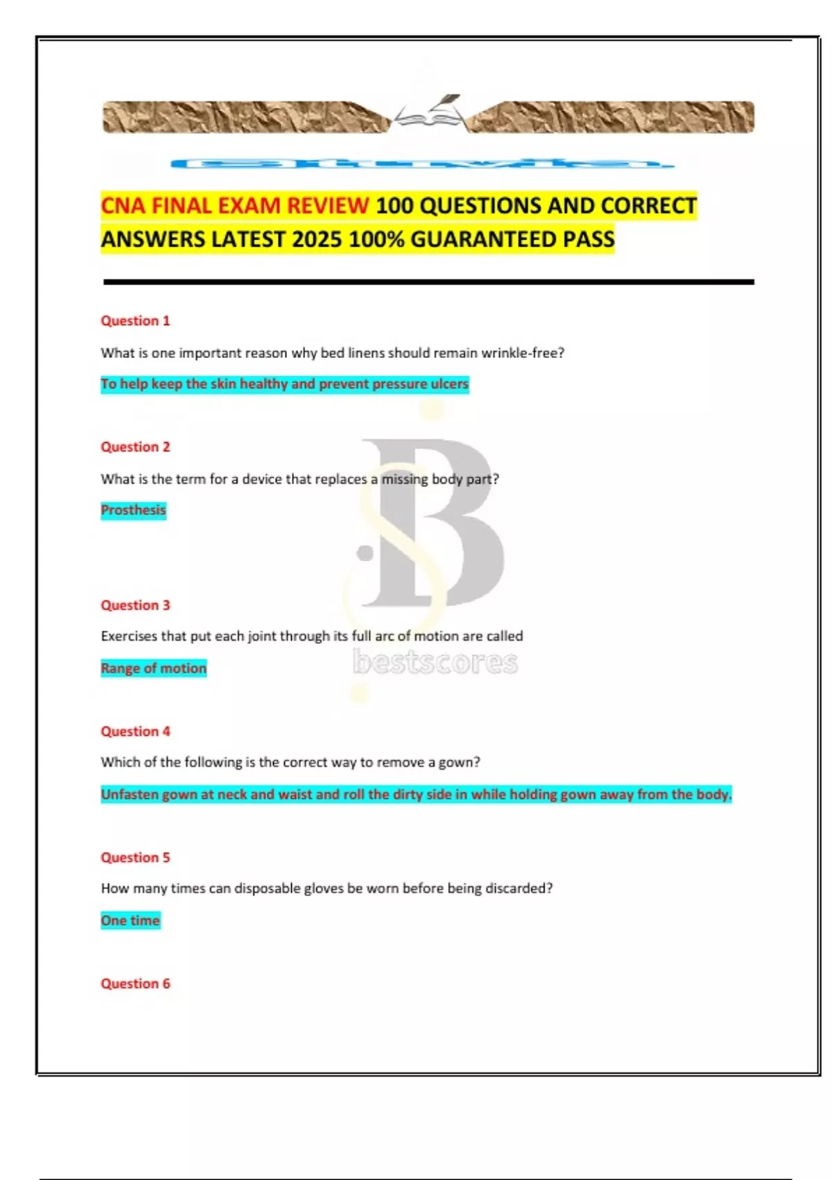 CNA FINAL EXAM REVIEW 100 QUESTIONS AND CORRECT ANSWERS LATEST 2025 100% GUARANTEED PASS