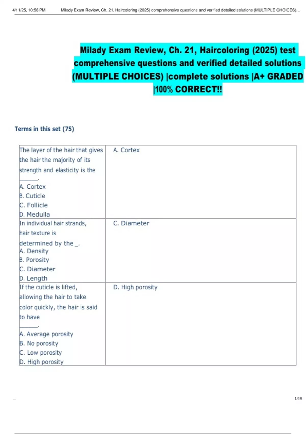 Milady Cima Exam AND PRACTICE EXAM QUESTIONS CURRENTLY TESTING COMPLETE ACCURATE EXAM QUESTIONS WITH DETAILED VERIFIED ANSWERS /ALREADY GRADED A+ //BRAND NEW!! Milady Cima Exam AND PRACTICE EXAM QUESTIONS CURRENTLY TESTING COMPLETE ACCURATE EXAM QUESTIONS WITH DETAILED VERIFIED ANSWERS /ALREADY GRADED A+ //BRAND NEW!!Milady Cima Exam AND PRACTIC