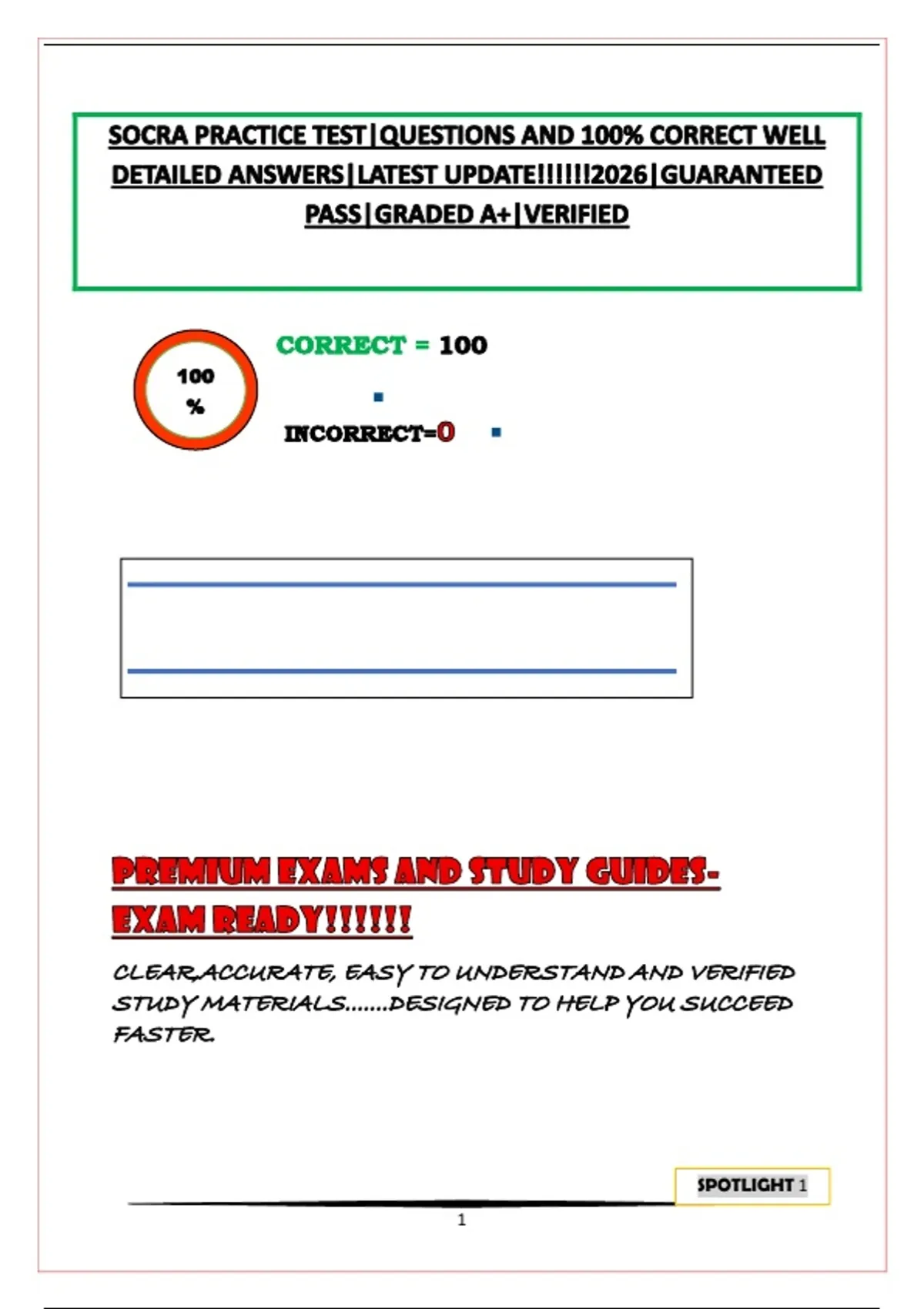 SOCRA PRACTICE TEST|QUESTIONS AND 100% CORRECT WELL DETAILED ANSWERS|LATEST UPDATE!!!!!!2026|GUARANTEED PASS|GRADED A+|VERIFIED