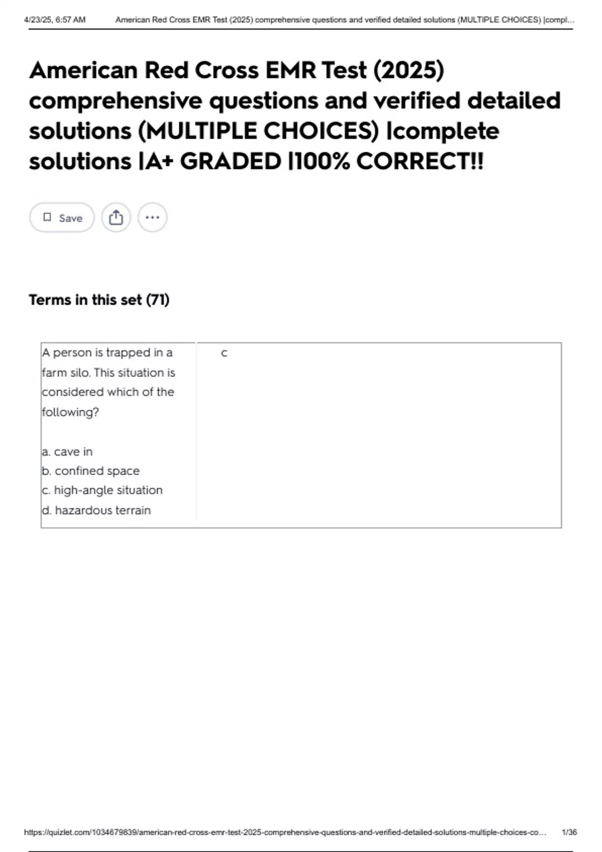 American Red Cross EMR Test (2025) comprehensive questions and verified detailed solutions (MULTIPLE CHOICES) |complete solutions |A+ GRADED |100% CORRECT!!