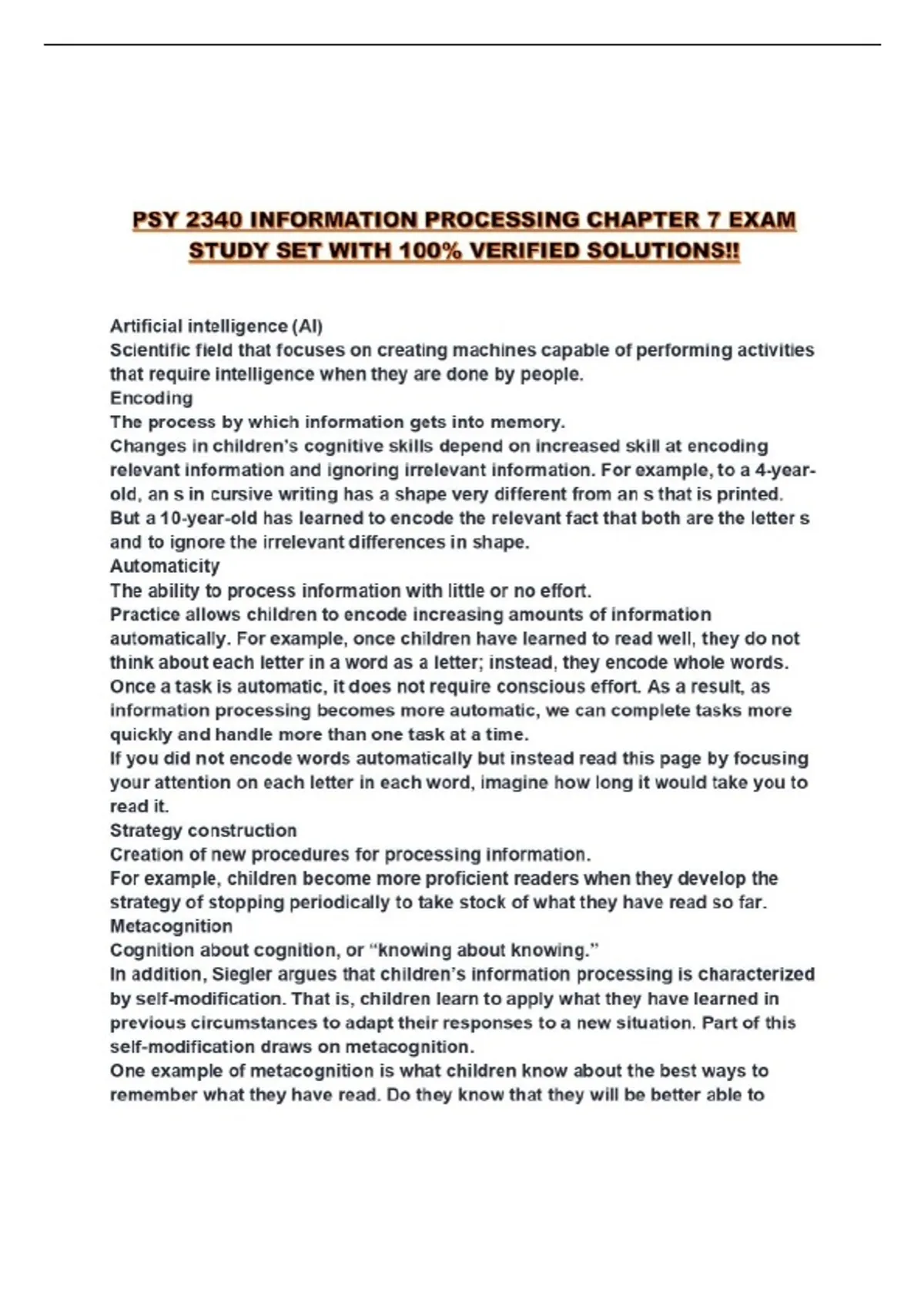 PSY 2340 INFORMATION PROCESSING CHAPTER 7 EXAM STUDY SET WITH 100% VERIFIED SOLUTIONS!!