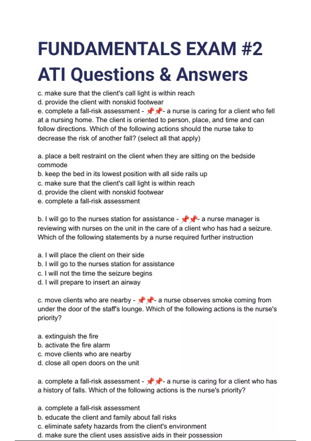 The package covers: Fundamentals ATI Exam 1 Exam 1 ATI Fundamentals Chapters 1, 2 & 6 ATI Fundamentals Practice Questions Fundamentals ATI Exam Review ATI Fundamentals Exam 1 ATI Fundamentals 2 Quiz Questions and Answers Fundamentals Exam #2 ATI Questions & Answers