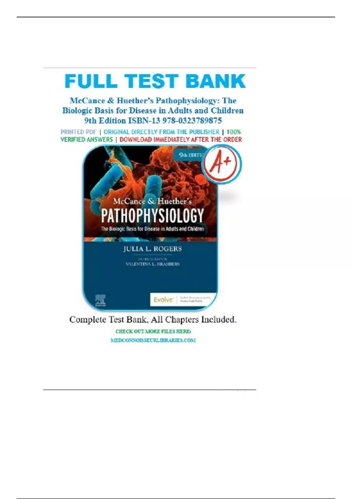 STUDY|BUNDLE TEST BANK MCCANCE & HUETHER’S PATHOPHYSIOLOGY: THE BIOLOGIC BASIS FOR DISEASE IN ADULTS AND CHILDREN 8&9TH EDITIONS.