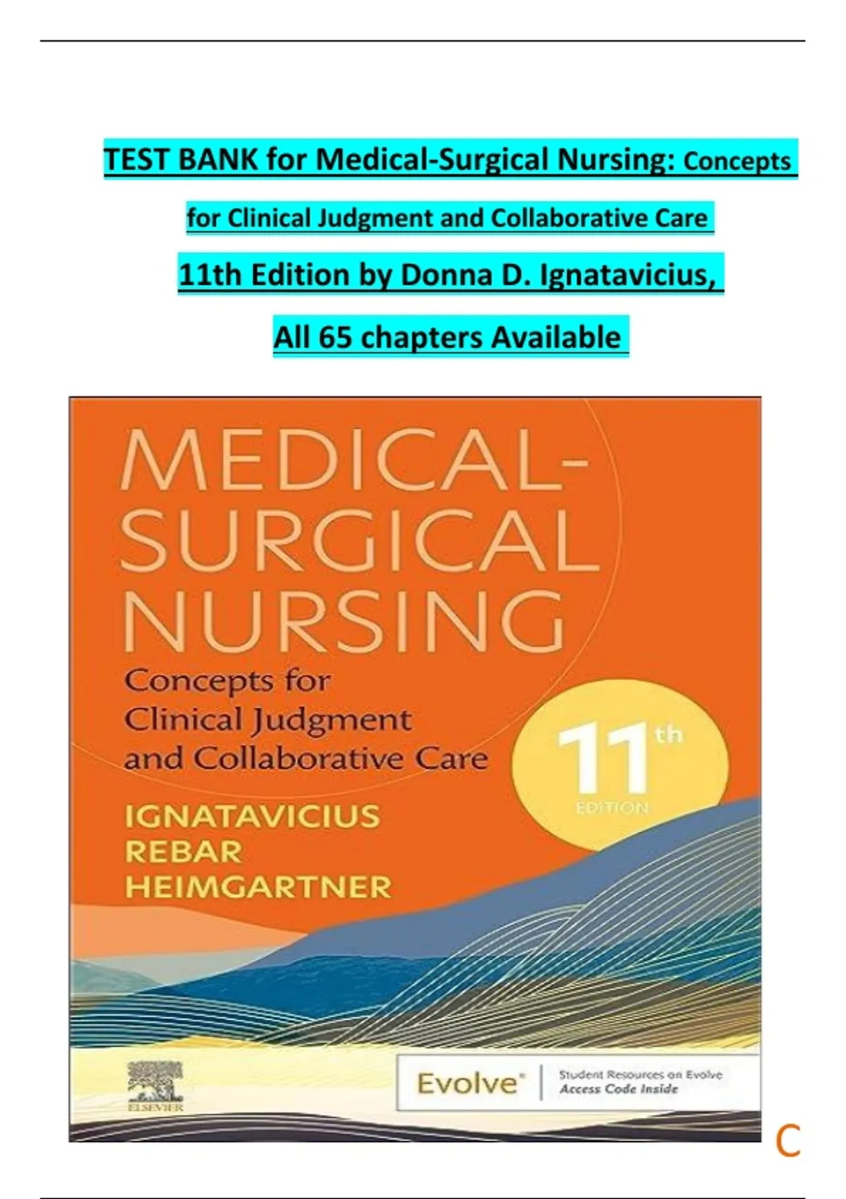 TEST BANK FOR Medical-Surgical Nursing: Concepts for Clinical Judgment and Collaborative Care 11th edition by Donna D. Ignatavicius ISBN: 978-0323878265 COMPLETE GUIDE WITH RATIONALES 100% VERIFIED A+ GRADE ASSURED!!!!NEW LATEST UPDATE!!!!!!