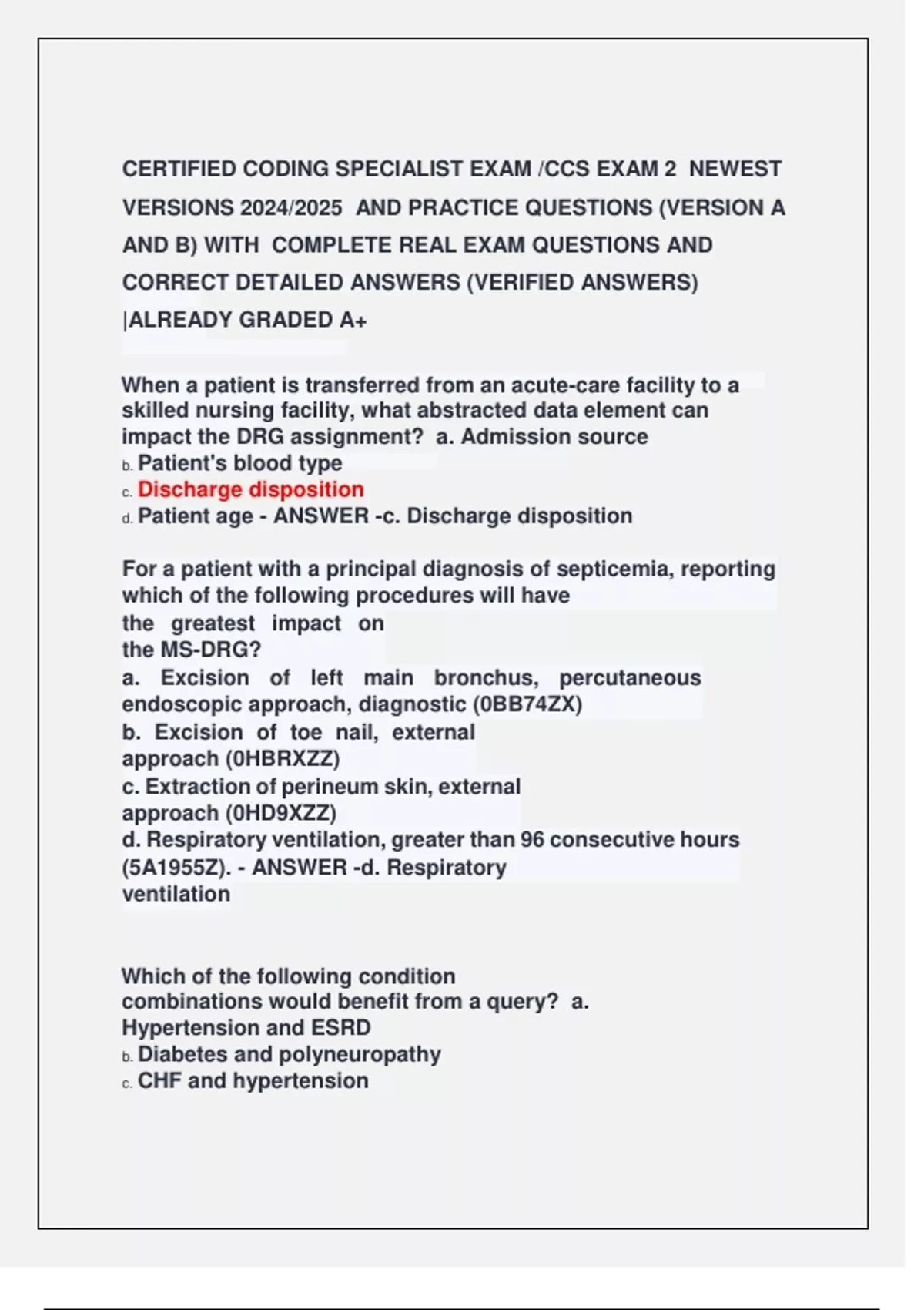 CERTIFIED CODING SPECIALIST EXAM /CCS EXAM 2 NEWEST VERSIONS CERTIFIED CODING SPECIALIST MOCK EXAM/CCS MOCK EXAM 2 NEWEST VERSIONS 2024 (VERSION A AND B)
