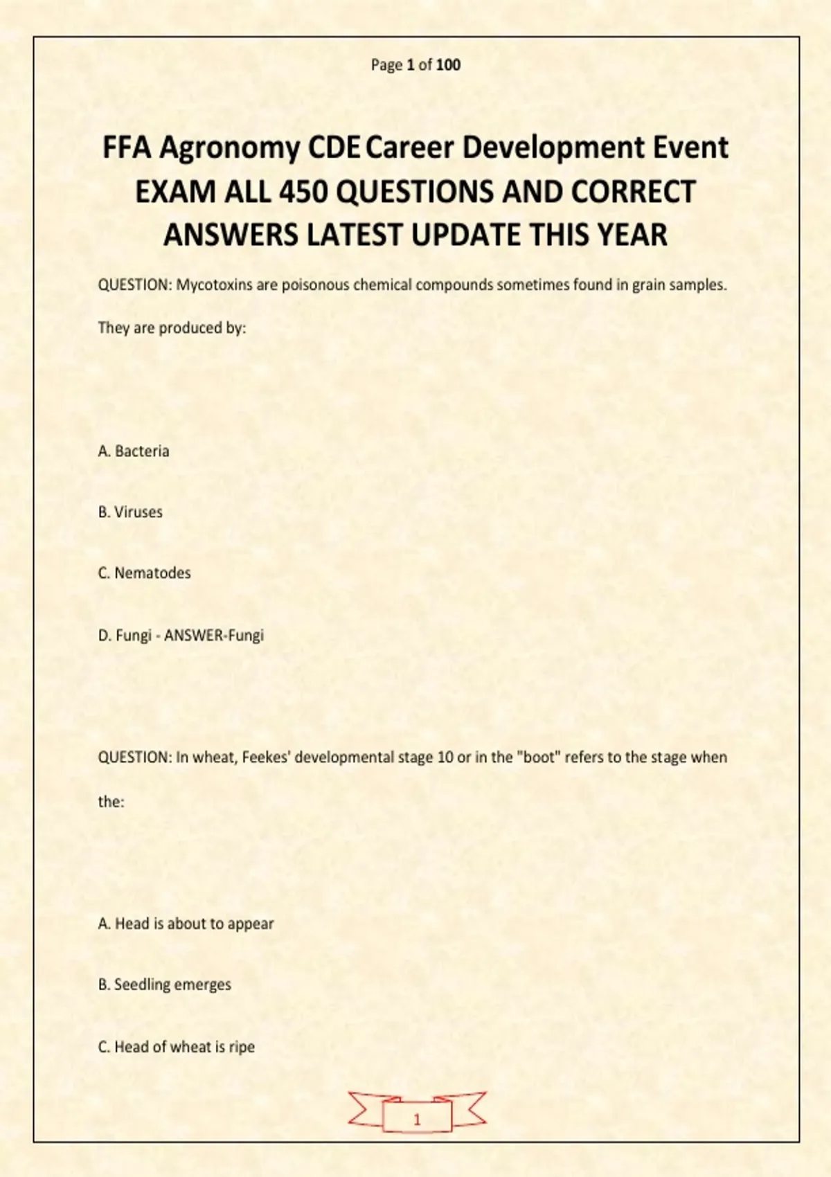 FFA Agronomy CDE Career Development Event EXAM