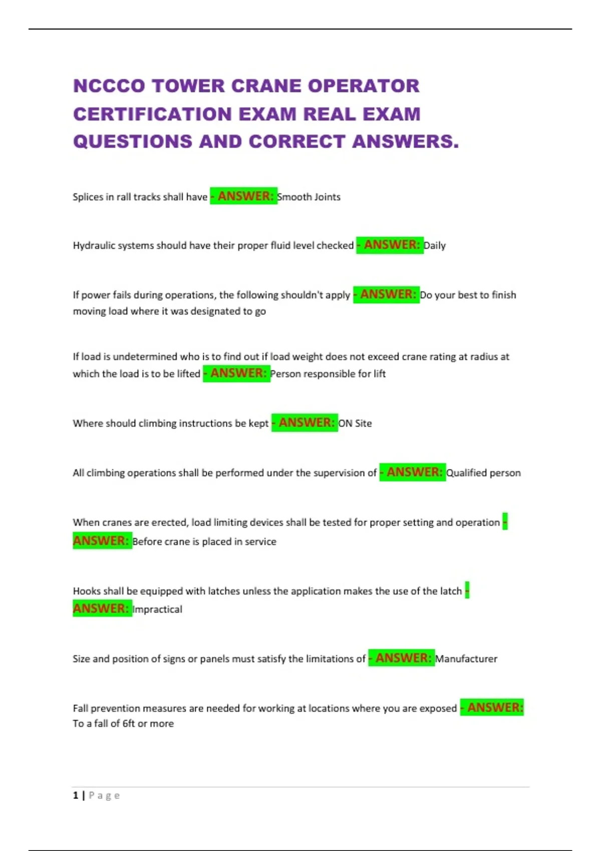 NCCCO TOWER CRANE OPERATOR CERTIFICATION EXAM