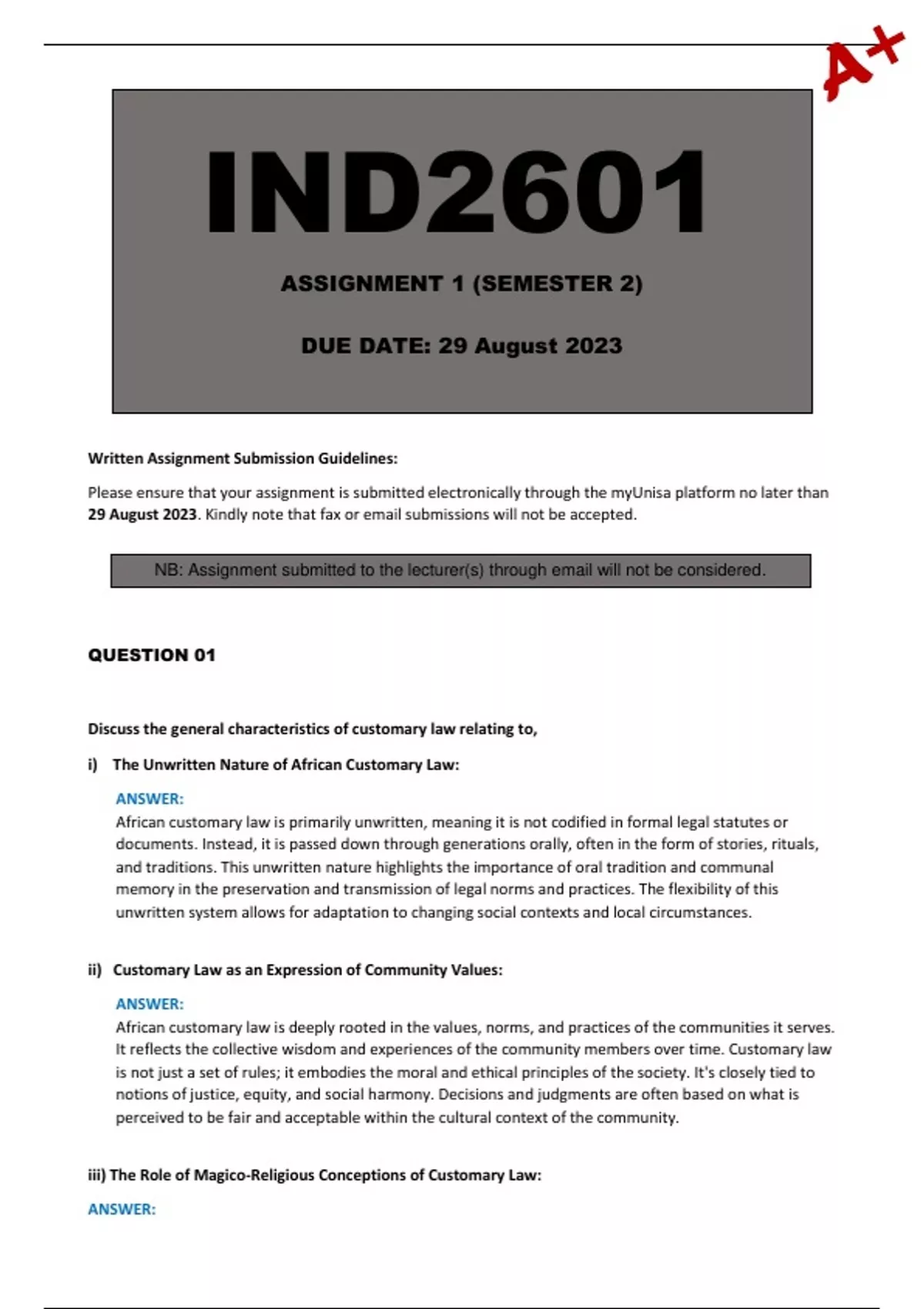 IND2601 Assignment 1 (Detailed Answers) Semester 2 - Due 4 September 2024
