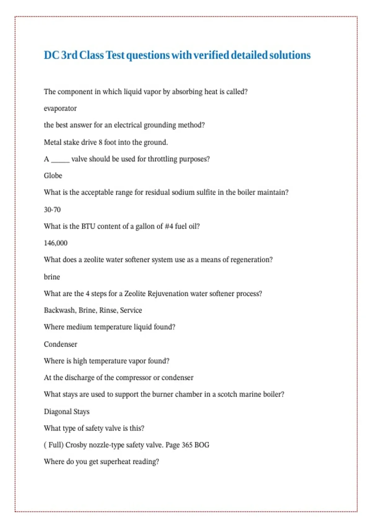 DC 3rd Class Study Guide Boilers-General Exam with verified detailed answers