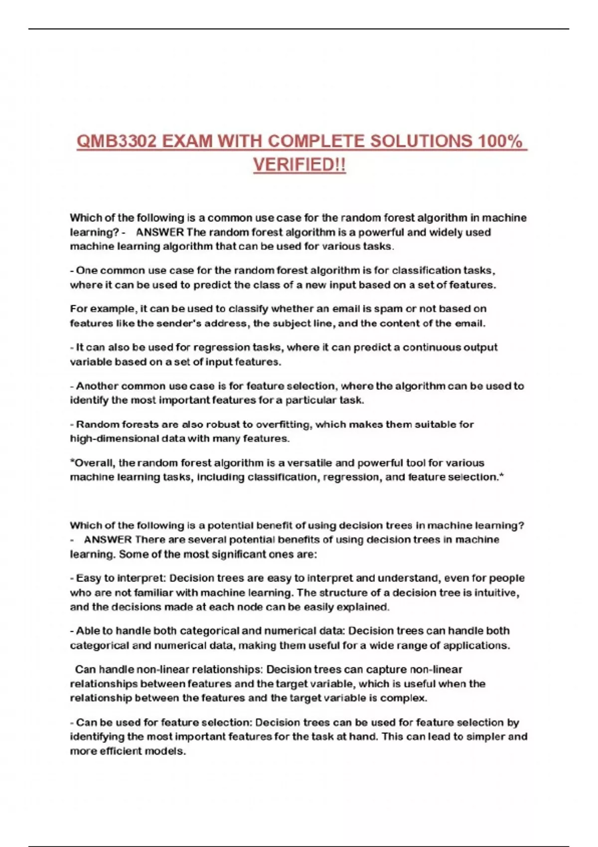 QMB3302 FINAL EXAM, QMB 3302 FINAL UF QUESTIONS AND CORRECT ANSWERS 100% VERIFIED !!