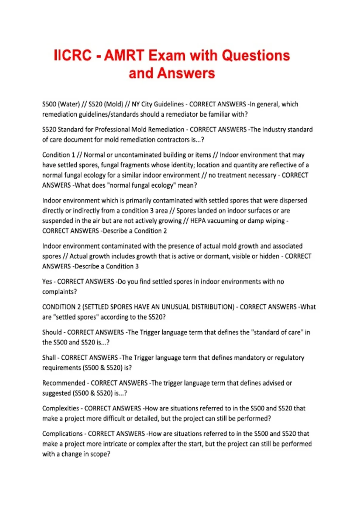 IICRC - AMRT Exam with Questions and Answers.