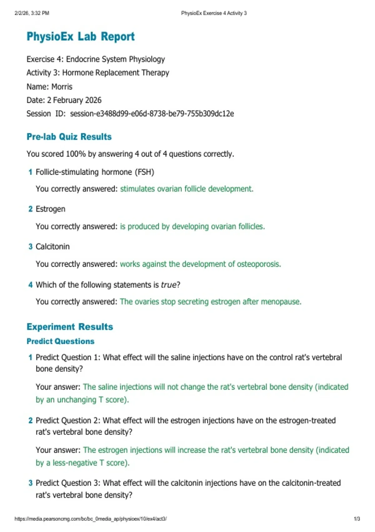 BIO 202 PHYSIOEX LAB REPORTS