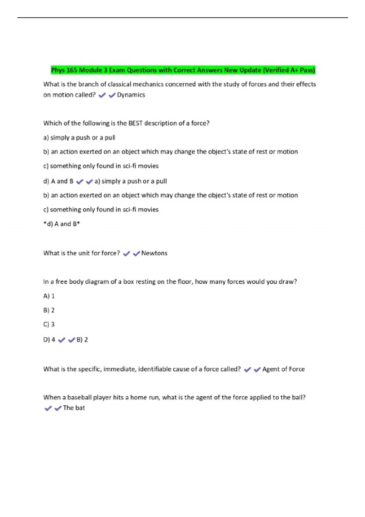 Phys 165 Module 3 Exam Questions with Correct Answers New Update (Verified A+ Pass) 5 Exam (elaborations) Phys 165 Module 2 Exam Questions with Correct Answers New Update 6 Exam (elaborations) Phys 165 Module 10 Exam Questions with Correct Answers New Update (Verified A+ Pass 7 Exam (elaborations) Phys 165 Module 1 Questions with Correct Answers
