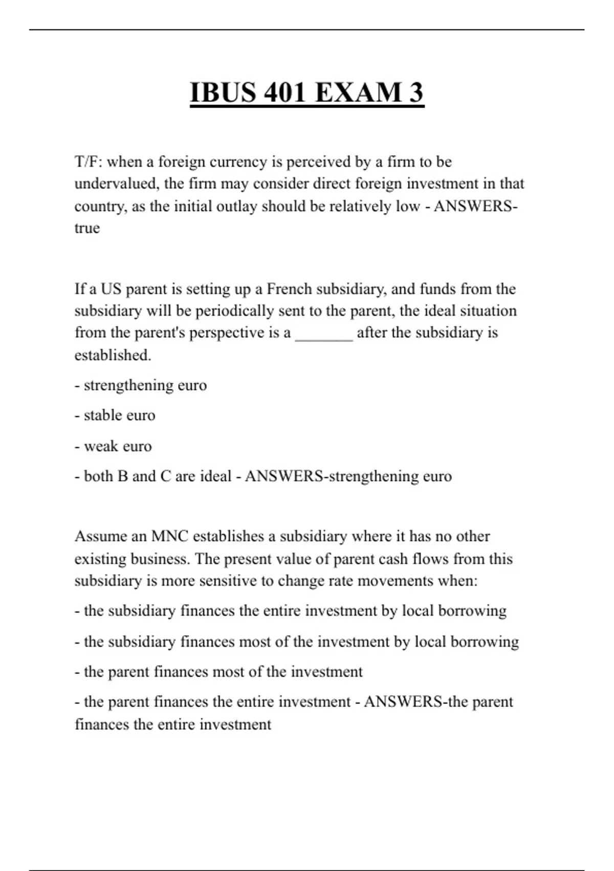 IBUS 401 EXAM BUNDLE DEAL