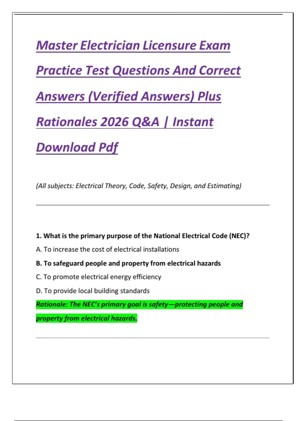 MASTER ELECTRICIAN LICENSING EXAM BUNDLE LATEST 2026 RATED A