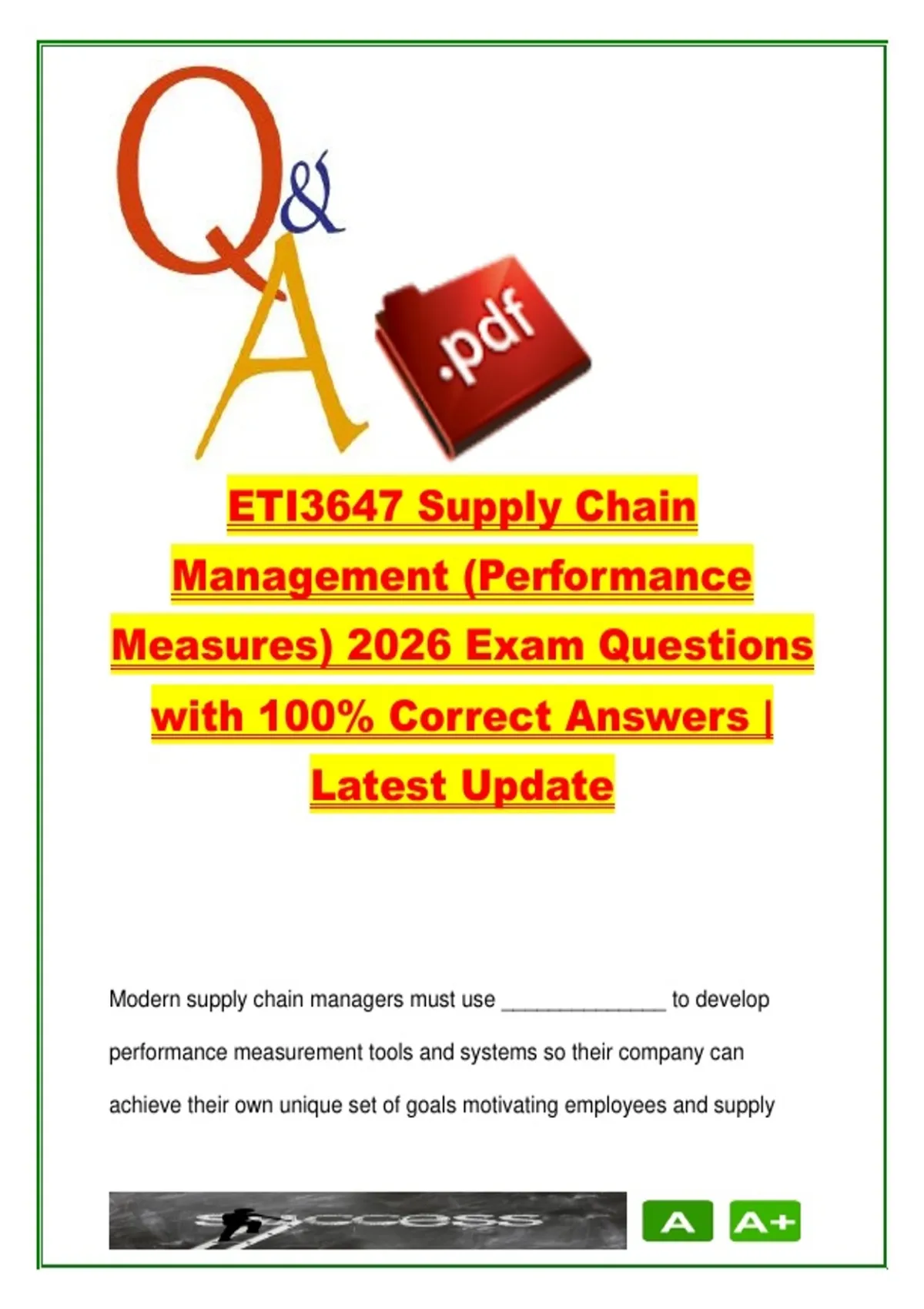 ETI3647 SUPPLY CHAIN MANAGEMENT EXAM COMPLETE PACKAGE DEAL